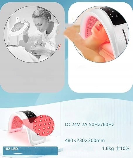 - Терапия для лица с 7-цветным светодиодом - Лечебная маска со светодиодами оказывает различные терапевтические эффекты: красный свет - уменьшает шероховатость кожи. Синий свет – подавляет склонность к прыщам. Зеленый свет – баланс пропорций воды и масла. Желтый свет – лечит покраснения кожи. Фиолетовый свет – поддерживает обмен веществ. Фиолетовый свет – осветление, уменьшение пигментации. Оранжевый свет – снятие отека. Функция кровообращения – белый свет для устранения многих повреждений кожи.