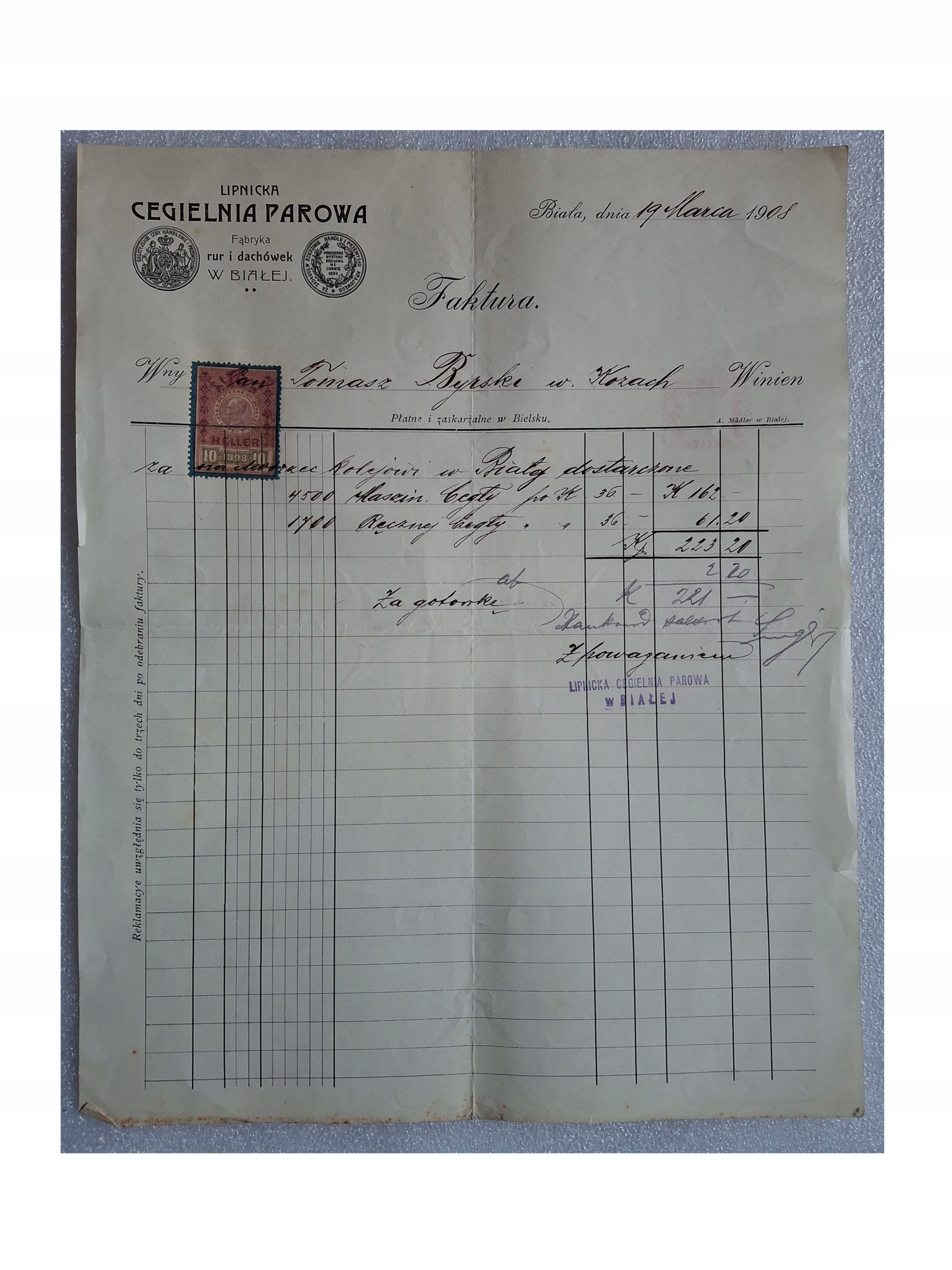 ЛИПНИЦЬКИЙ ПАРОВИЙ ЦЕГЕЛЬНИЙ ДВІР 1908р