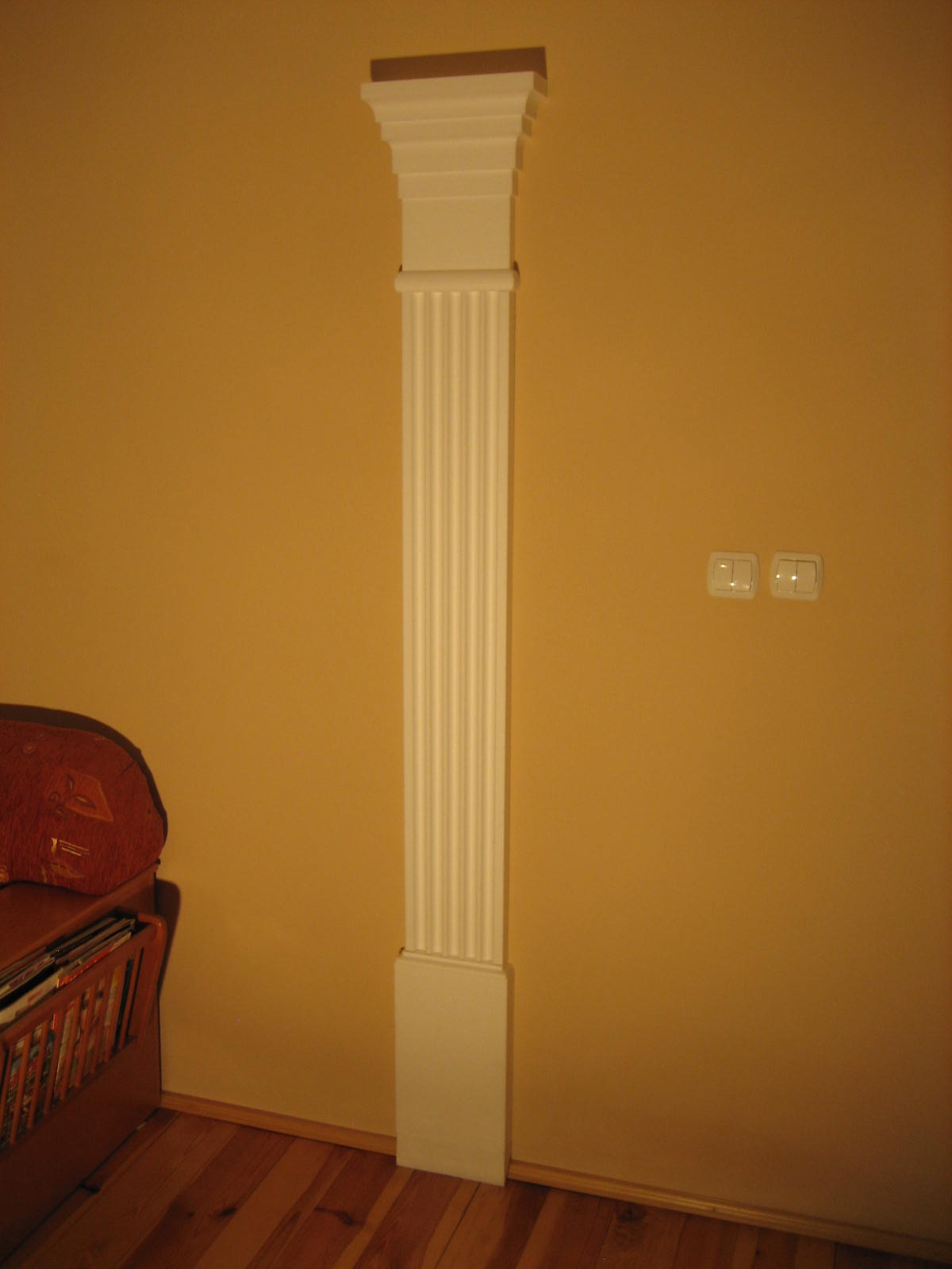 После установки колонн их следует покрасить. кистью с использованием гипсовой шпаклевки.