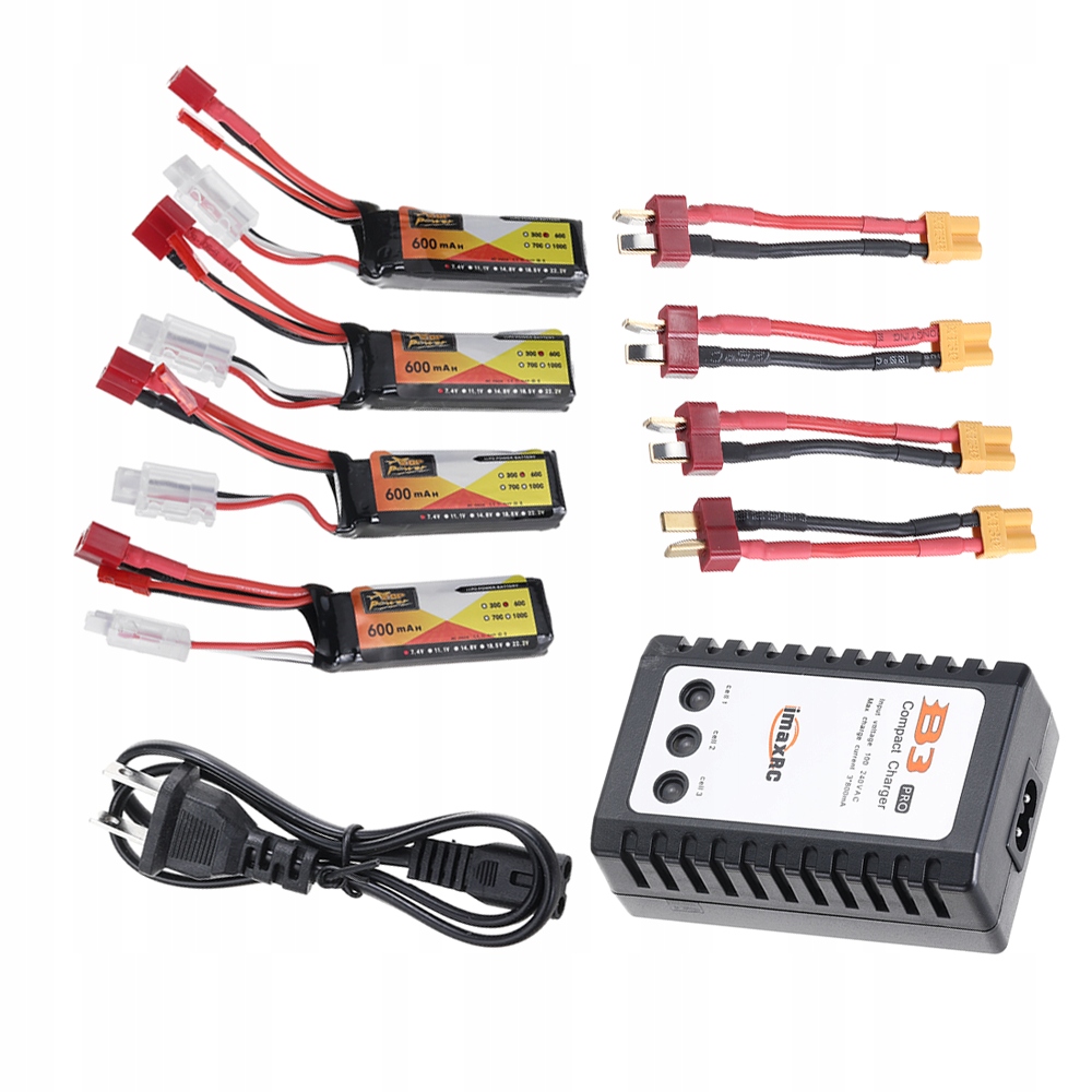 Lipo 7,4V 600MAH 60C 2S Батарея с зарядным устройством B3 и кабелем адаптера XT30