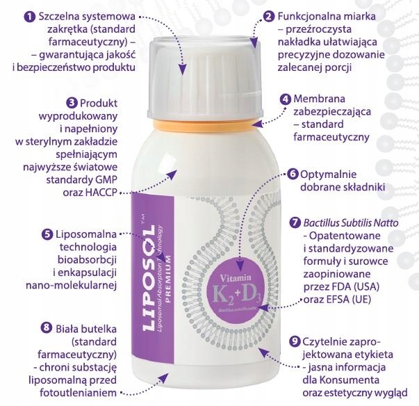 Liposol TM Витамин K2 + D3 Bacillus Subtilis Natto