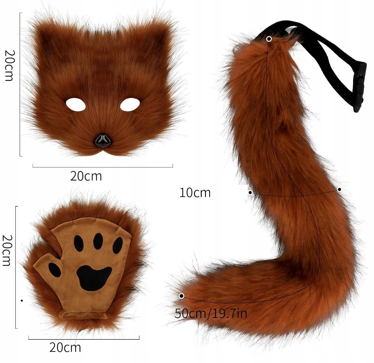 Комплект 3в1: Меховая маска+Хвост, Лапы+Перчатки