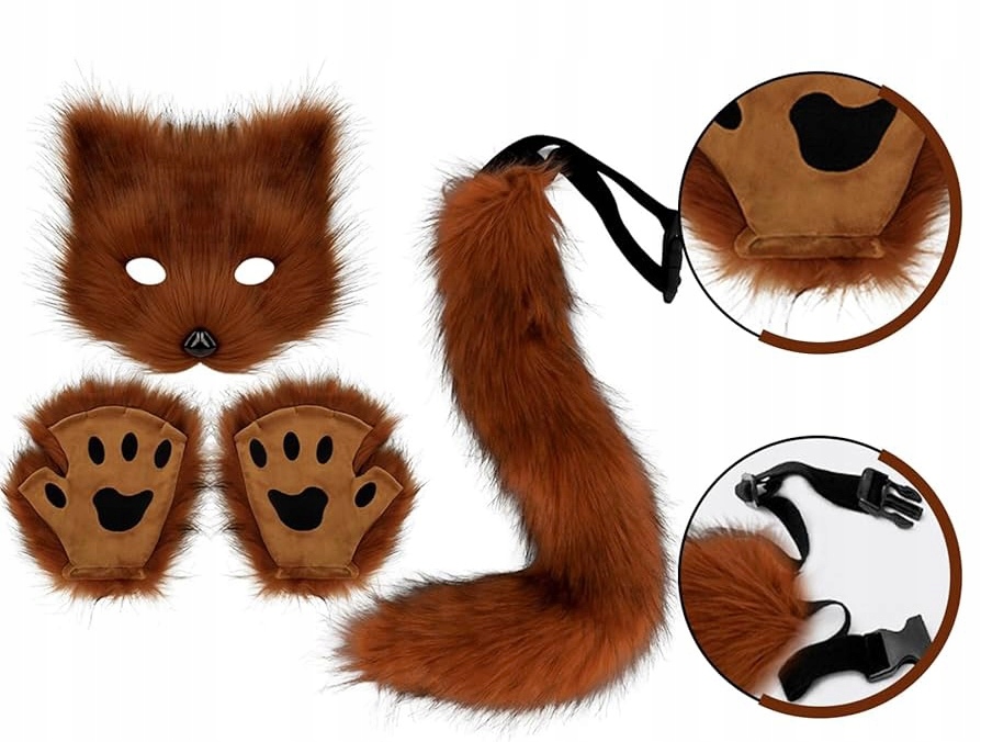 Чувствуете ли вы связь со своей животной стороной? Вас увлекает мир фурсона, териана или косплея? Этот набор-идеальный выбор! Мягкий реалистичный хвост, чокер, пушистые перчатки с когтями и стильная маска помогут вам выразить себя и воплотить любимого персонажа.