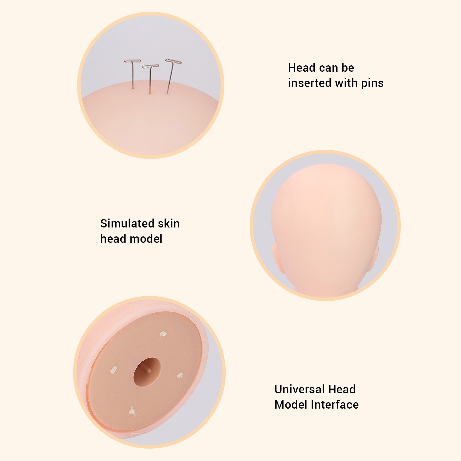 2. Realsile: изготовлен из мягкого резинового материала из ПВХ, имитируя тонкий оттенка реальной человеческой кожи головы, не только трудно визуально различать подлинность, но и принести крайний реальный опыт в каждом прикосновении.