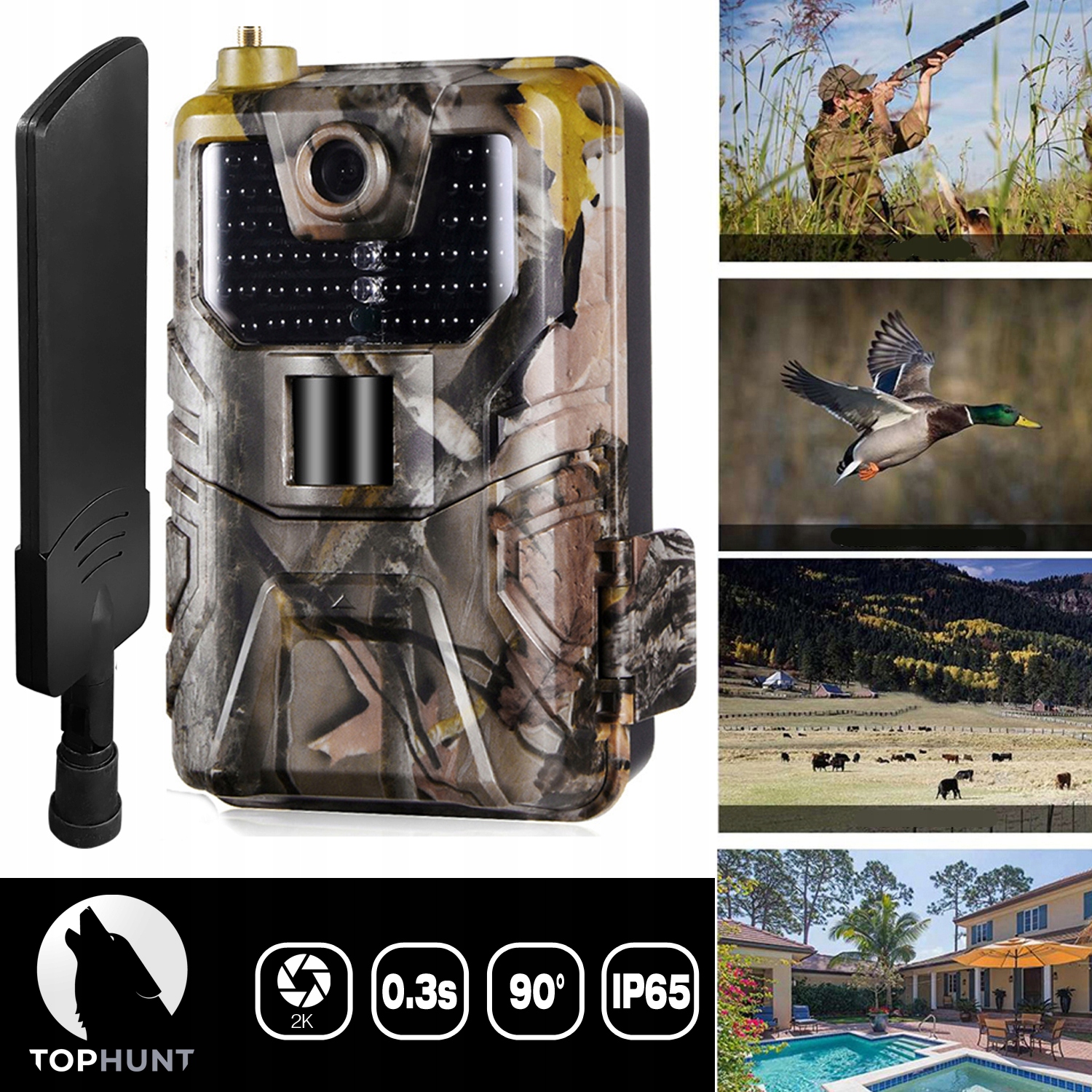 TOPHUNT HC-900LTE 2K (20MPIX) ЛЕСНАЯ МОШЕННИЧЕСКАЯ КАМЕРА 44 IR MMS GSM 4G LTE НОВАЯ МОЩНАЯ 12dBi GSM АНТЕННА - полная польская версия!