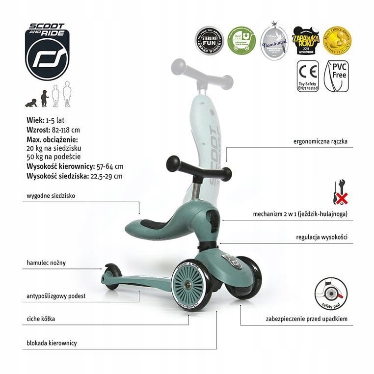 SCOOTANDRIDE Highwaykick 1 2в1 Самокат и самокат для детей 1-5 лет Forest