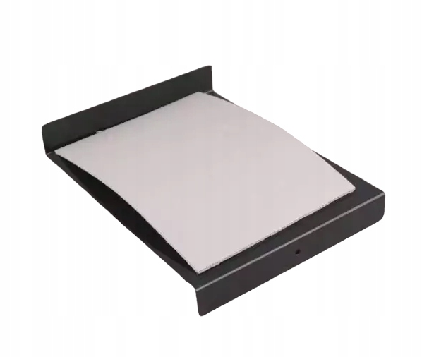 Лист согнут с двух сторон – это позволяет ему устойчиво крепиться к краю столешницы/стола, а на другом конце изгиб позволяет обездвижить пластину линогравюры, что существенно облегчает работу ( тарелка не «убегает» из-под рук). На одной стороне изгиба имеется отверстие, позволяющее прочно прикрутить лист к столу.