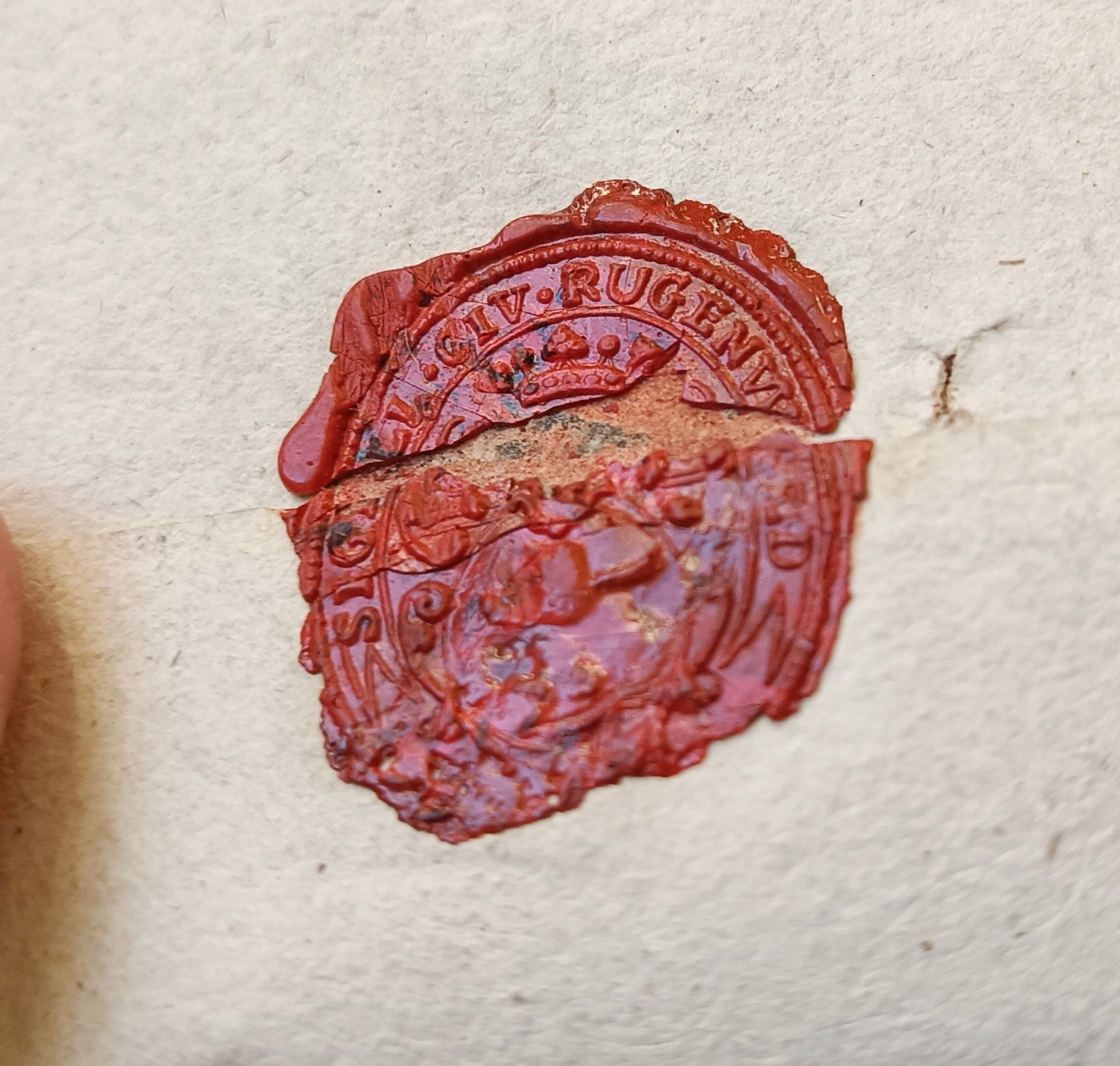 Письмо, написанное в Дарлово в 1773 году (немецкий) - две страницы содержания, подписанные мэром и городскими советниками Ругенвальдом. Это местное письмо - адресовано (вы можете увидеть такую моду в то время) по -французски: Месье ... Сохраняется частично сломанная печать Lak из магистрата Darłów