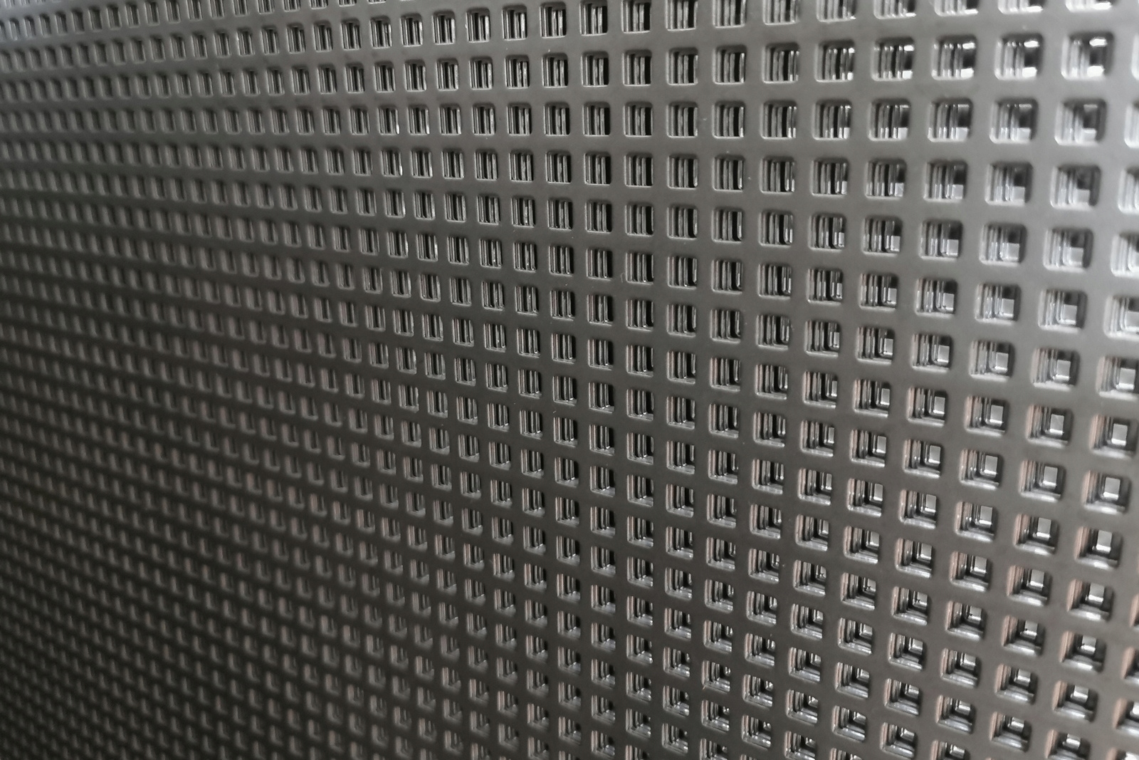 Перфорированный стальной лист (необработанный) с квадратными отверстиями, расположенными прямо.
