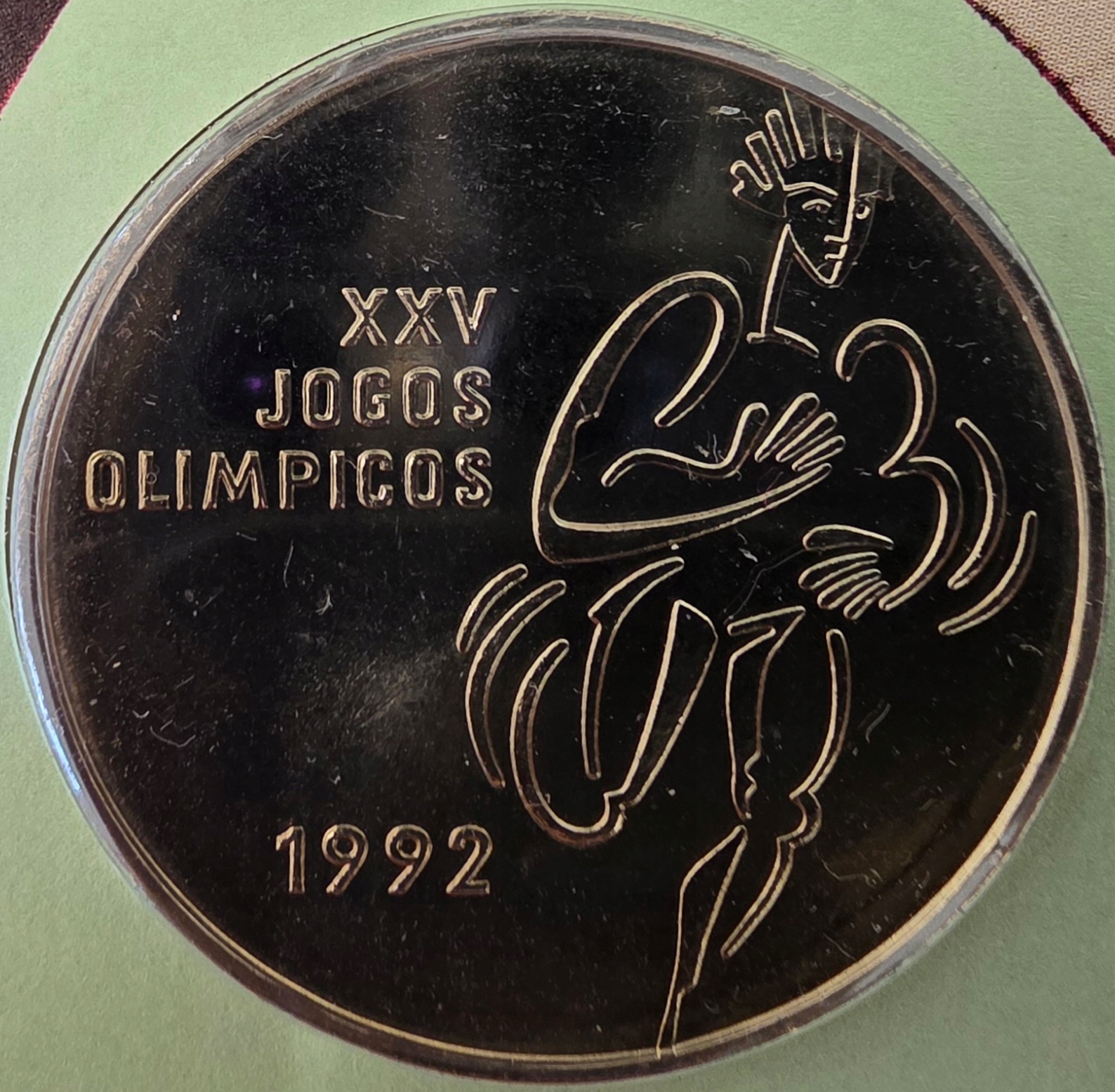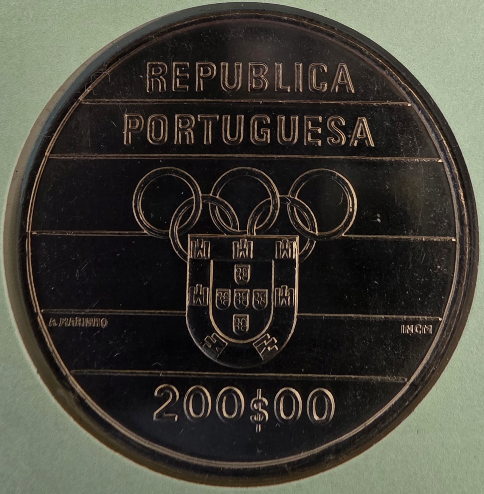 Португалия 200 эскудо, письмо об Олимпийских играх в Барселоне 1992 года и монета М2.