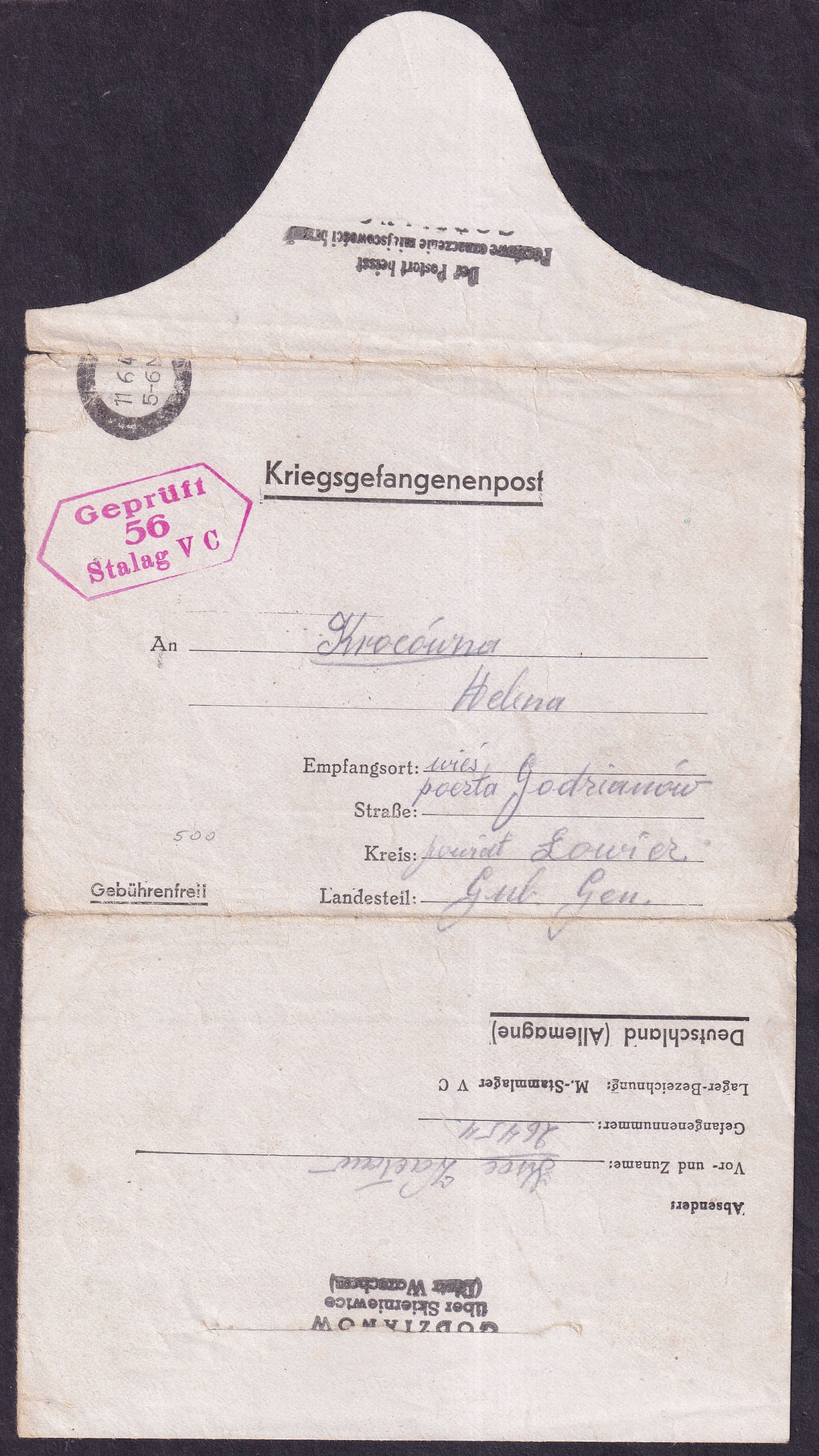 Сталаг VC Offenburg Письмо, отправленное из лагеря в Лович Годзиан1942 (83)