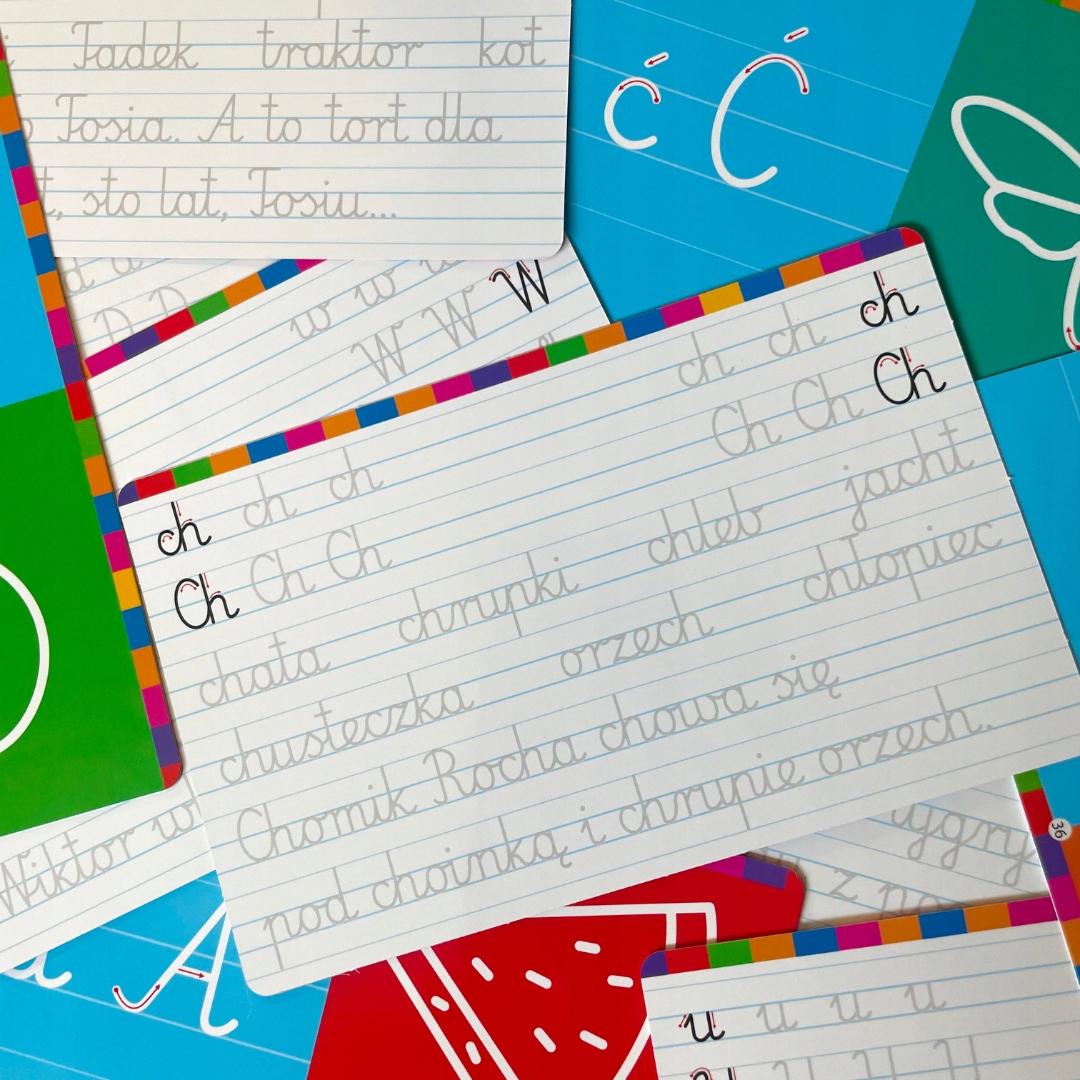 Поощряйте его привлекательной формой удобных, красочных карточек для каллиграфии, которые идеально ложатся в руку ребенка!
