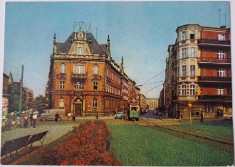 Открытка - Познань - молодой квадрат охраны - трамвай, автомобили - 1970!