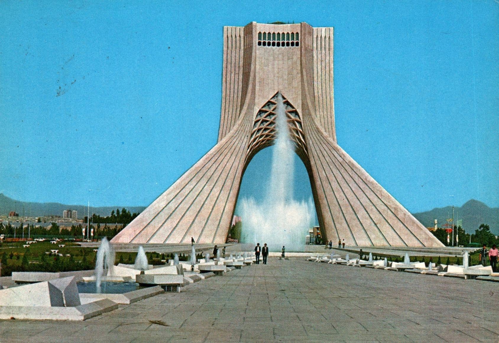 Взгляд наиболее узнаваемого тегеранского символа со времен позднего монархического Ирана - Памятник Шахджад, известный сегодня как башня Азади (Азади -Тауэр). Разработанный архитектором Хосином Аманата, памятник был представлен в 1971 году по случаю 2500-летичной годовщины персидской монархии и представляет собой комбинацию элементов доисламской и исламской архитектуры.