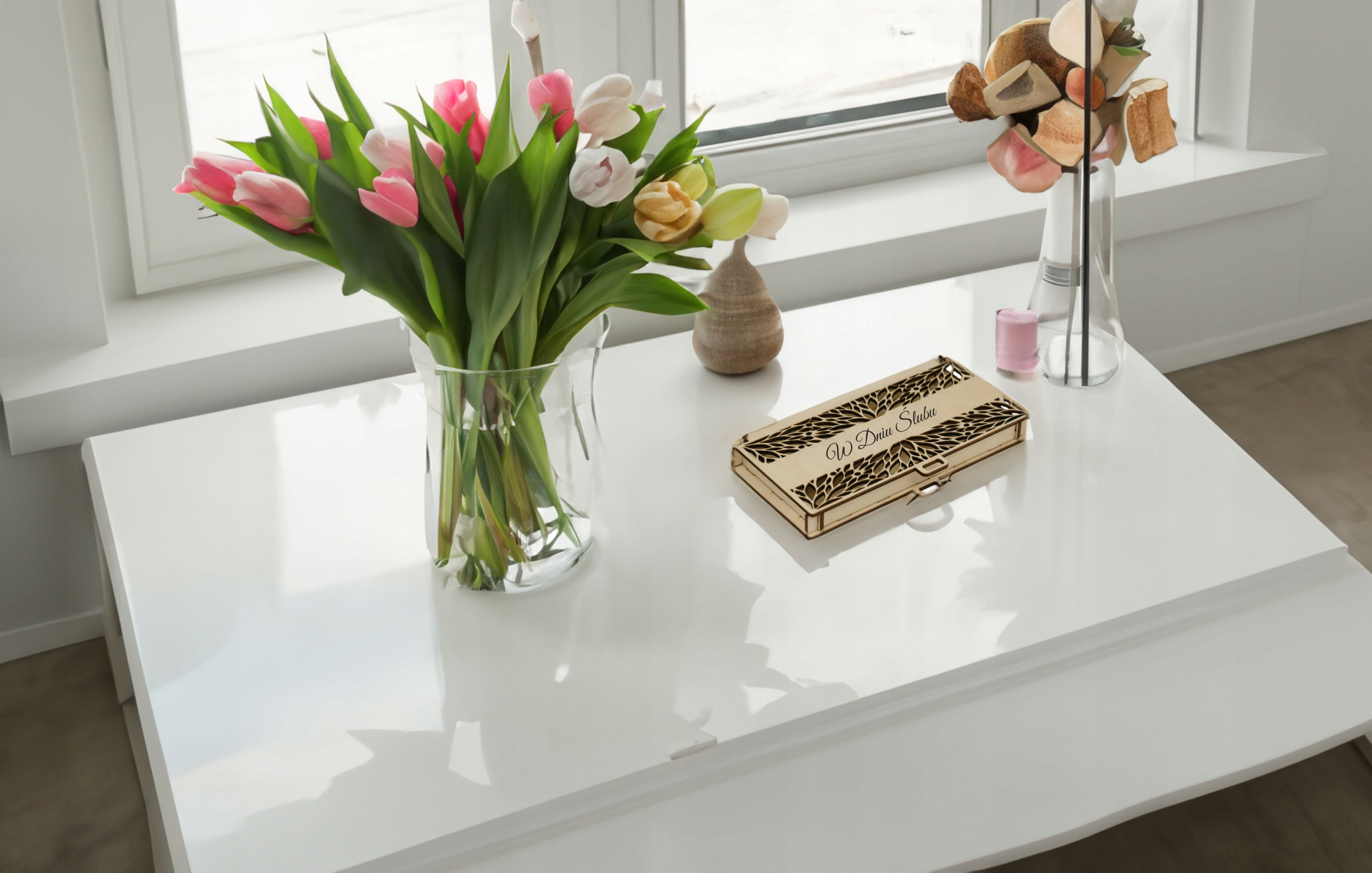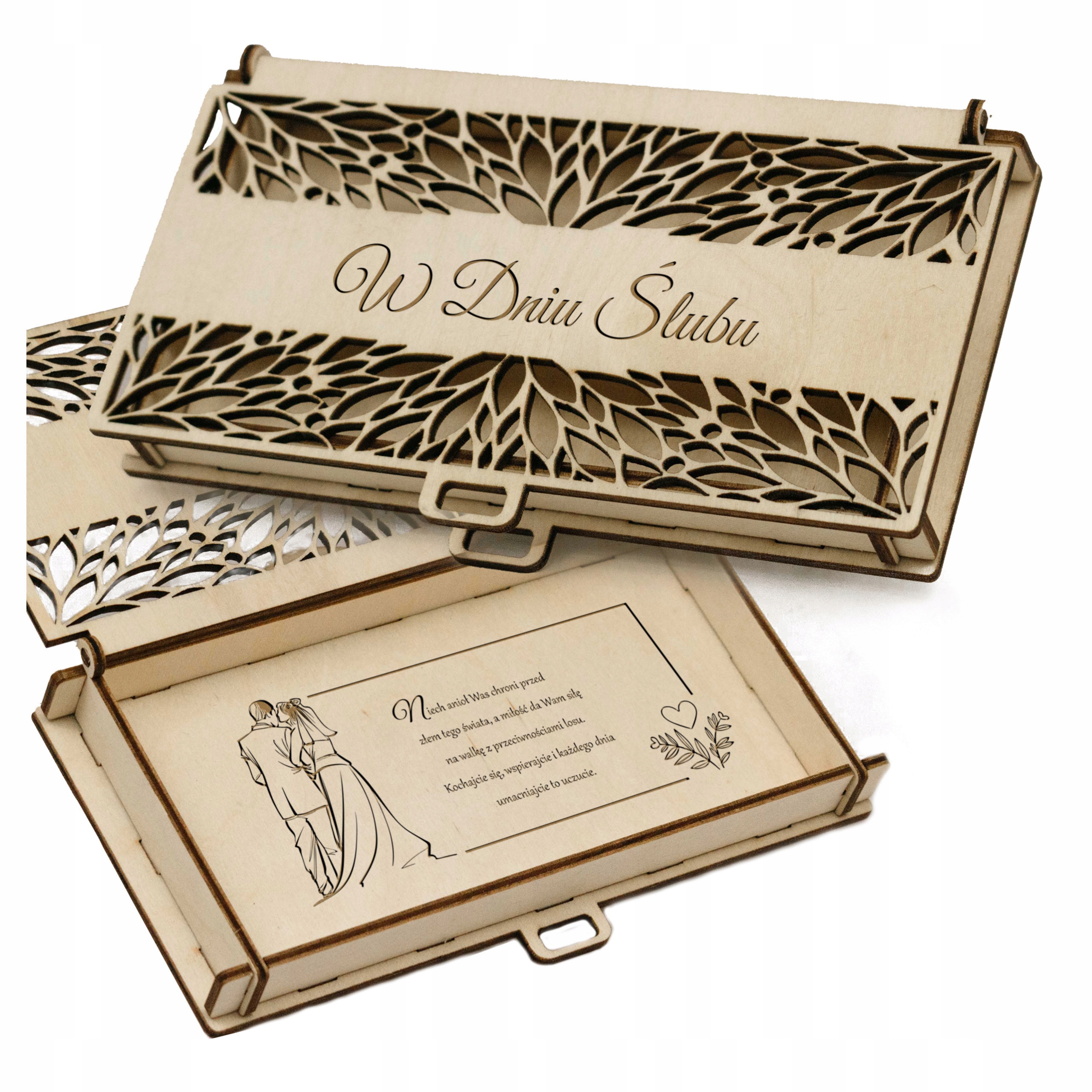 Красиво оформленная шкатулка с очаровательной гравировкой обязательно будет долго напоминать молодоженам об их чудесном дне!