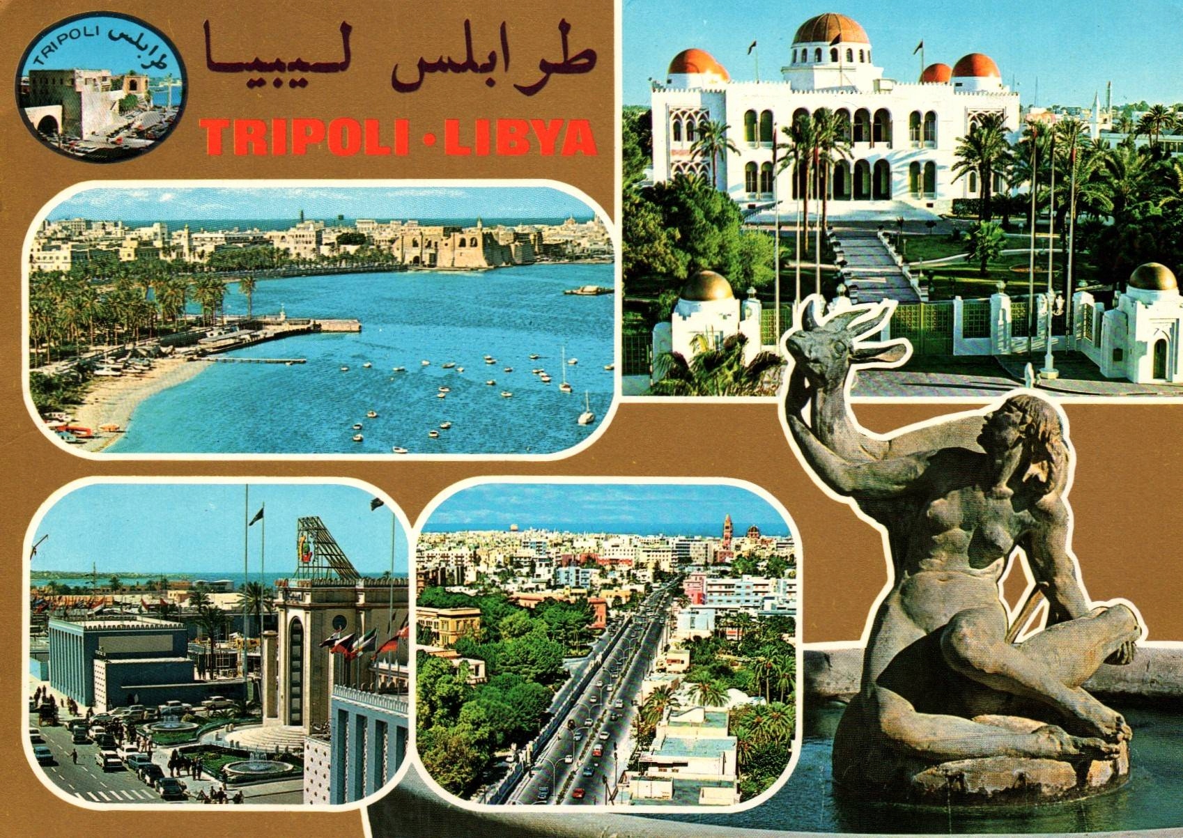 Барвна видокувка из Триполиса указывает на самую большую площадь и символ столицы Либии с латахом 70. XX недели. Видимая панорама открывается из порта и замка Ас-Сарая, величественного дворца с куполами, нового административного центра с флагами панства или характерного помника из газели. Място тентни жицием и розвоем, пополнение колониальной архитектуры с новой застройкой odzwierciedla ówczesne ambicije niepodległej Libii как нынешнее арабское время.