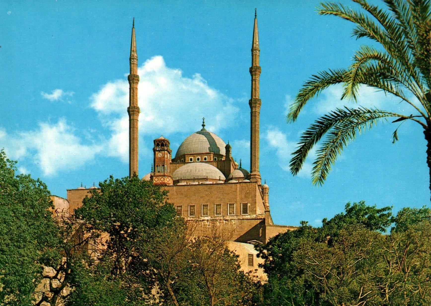 На открытке представлена величественная мечети Мухаммеда Али, расположенную в Каирской цитадели. Построенная в девятнадцатом веке как символ современного Египта, мечеть впечатляет с двумя стрельбами и классическим куполом в османском стиле. Окруженный пальмами и зеленью, это важное место поклонения и одна из самых известных точек зрения в Каире.
