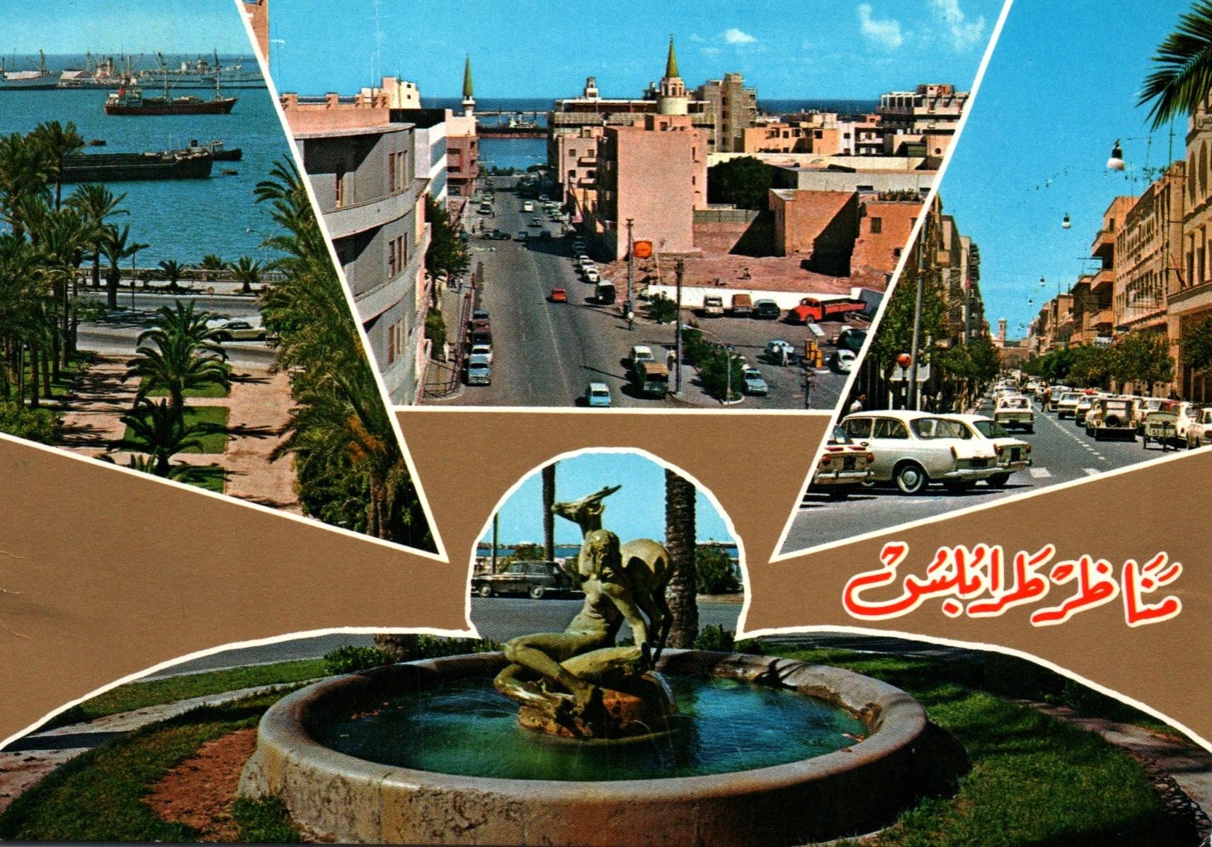 На открытке показано многомерное лицо Триполи, столицы Ливии, через набор из пяти городских фотографий. На аверсе мы видим: портовую бухту с пальмовой набережной и пришвартованными кораблями, широкие улицы с оживленным движением транспорта, классические городские постройки колониального периода и фонтан со скульптурой женщины и оленя — одно из характерных украшений городских площадей. Открытка представляет собой яркий образ мегаполиса 1960-х и 1970-х годов, сочетающий в себе современность с североафриканской городской традицией.