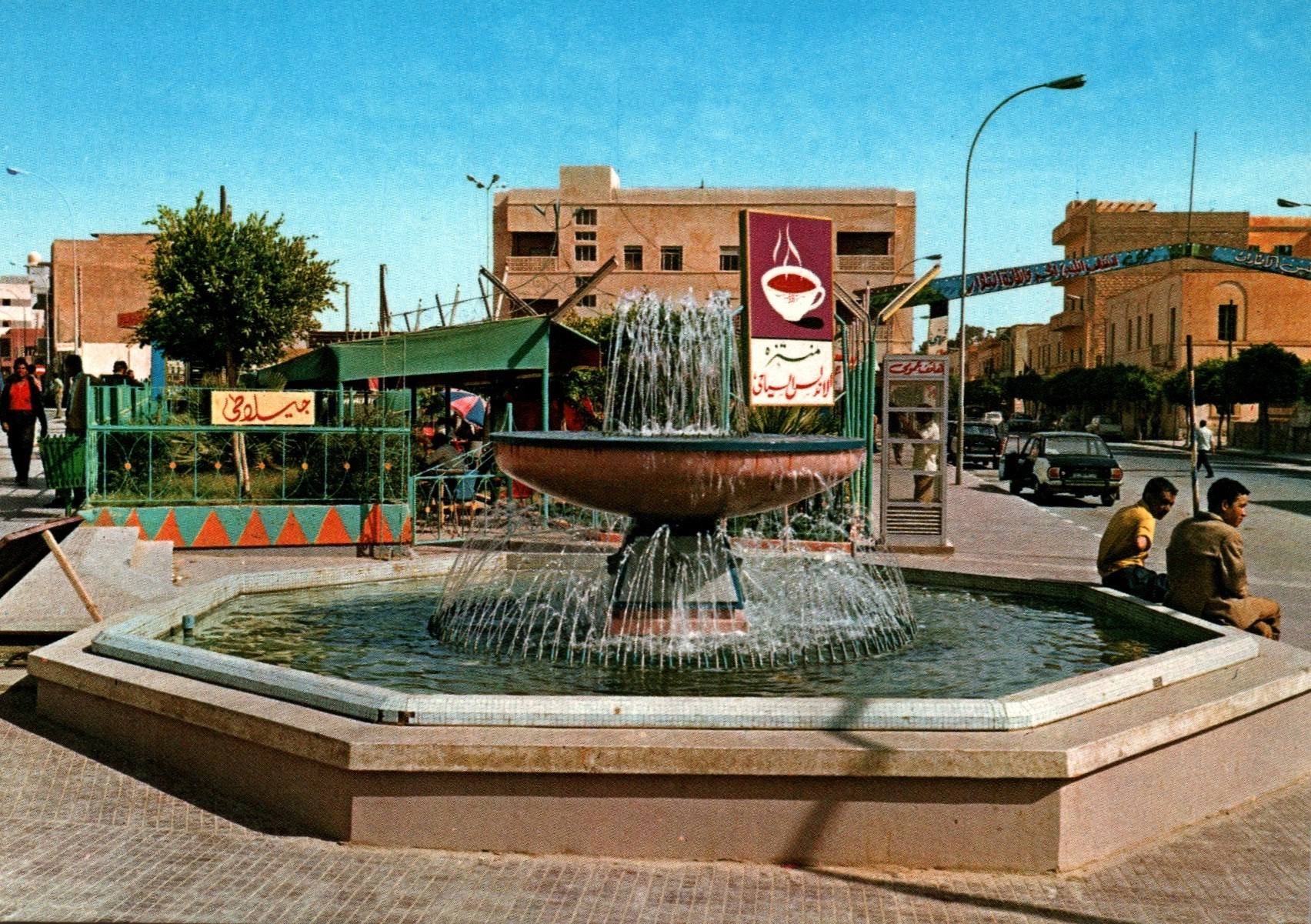Бенгази, Эль-Берка, городские фонтаны, уличный пейзаж, кафе, Северная Африка, поляки за границей, диаспора в Ливии, открытки 1970-х годов, переписка ПРЛ, передачи Польского радио, открытки без марки, туризм и повседневная жизнь в Ливии.