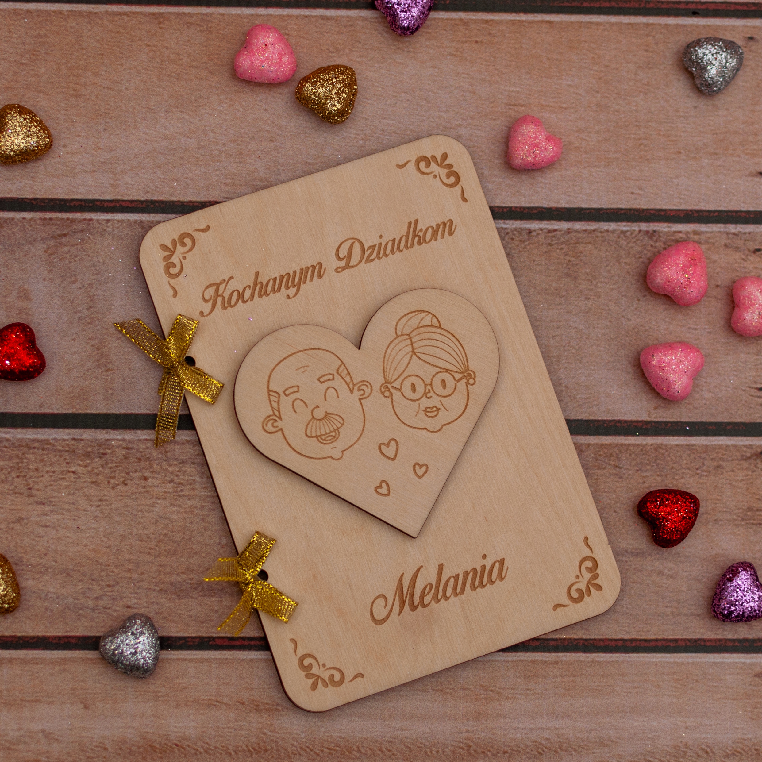 Открытка на день гранта и дедушки и бабушки ДЕРЕВЯННАЯ гравюра РАМКА от внуков БЕСПЛАТНО