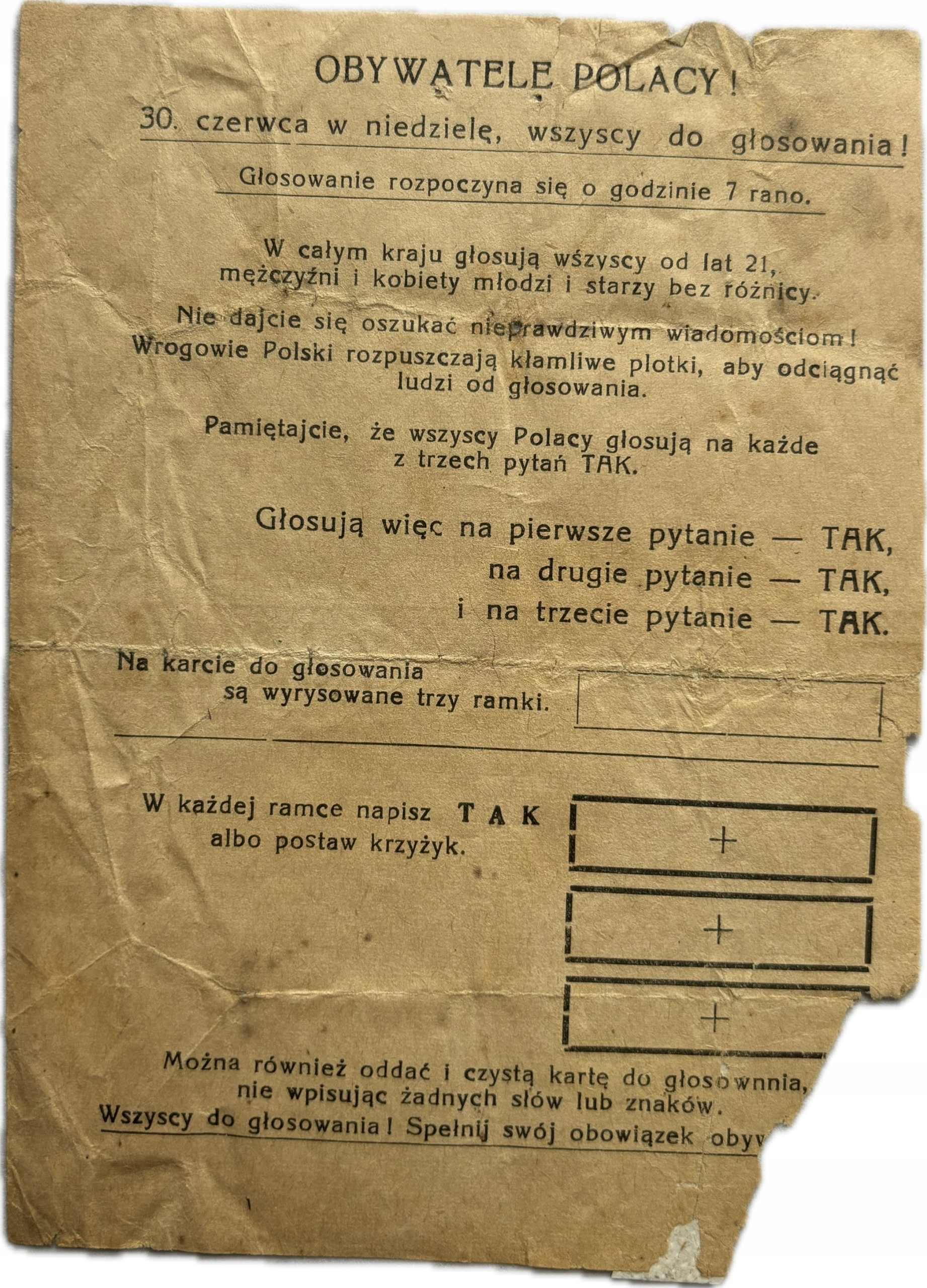 ЛИСТОВКА ГРАЖДАНЕ ПОЛЬШИ ГОЛОСУЮТ 3 X ЗА