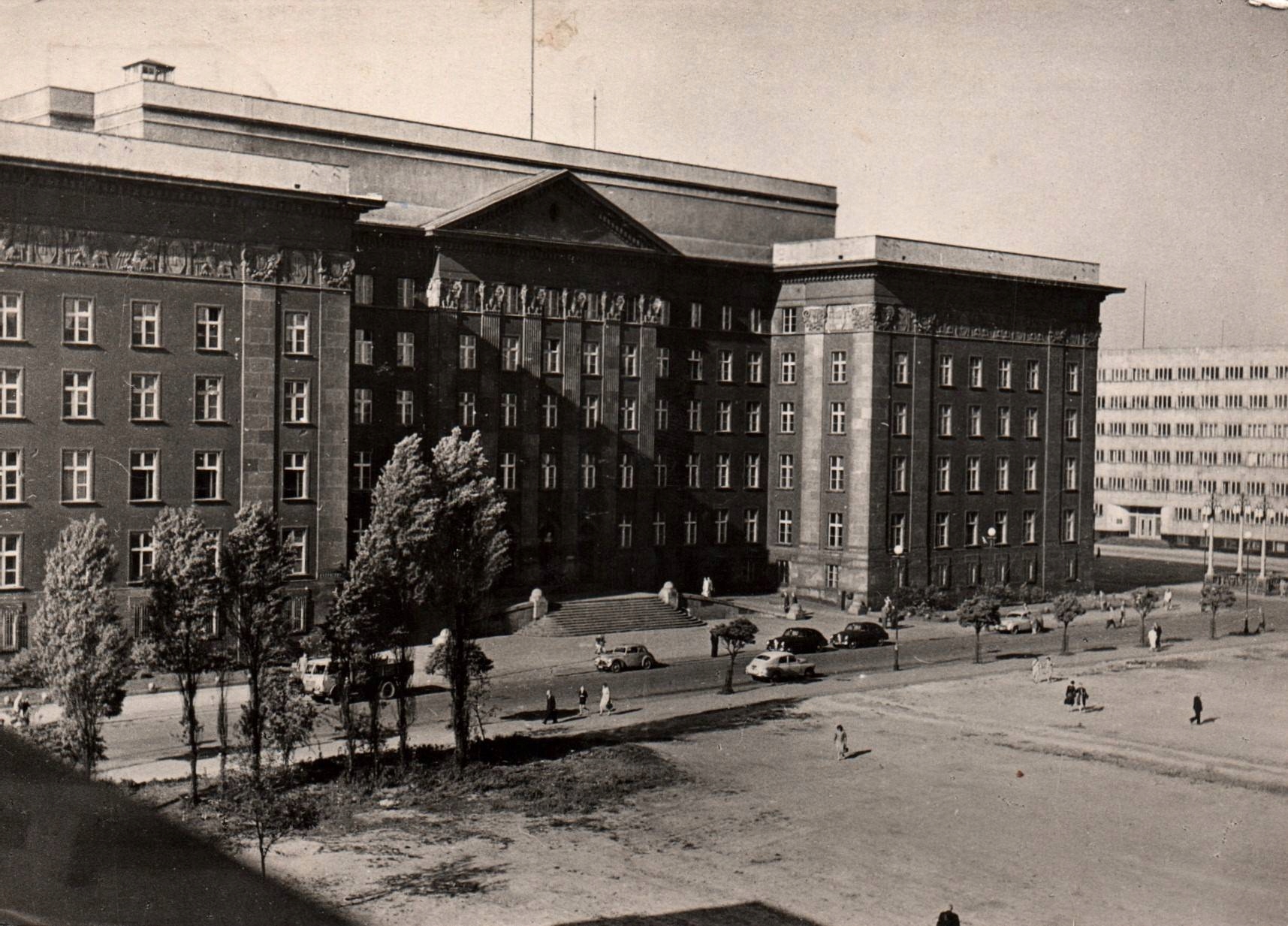 Открытка Katowice от циркуляции. Строительство провинциального национального совета. Фотография Т. Германьчик