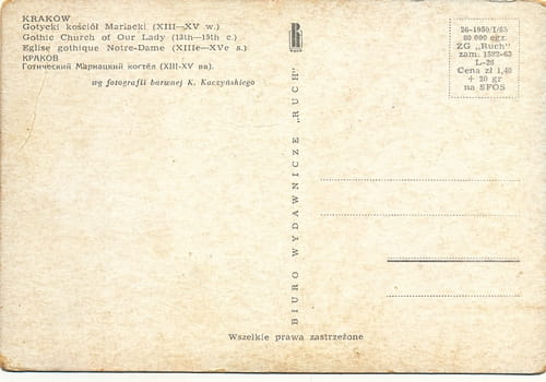 Просматривая «Листівка Краків - 07429», вы можете быть уверены, что данный товар из каталога «Краков и окрестности» будет доставлен из Польши и проверен на целостность. В цене товара, указанной на сайте, учтена доставка из Польши. Внимание!!! Товары для Евросоюза, согласно законодательству стран Евросоюза, могут отличаться упаковкой или наполнением.