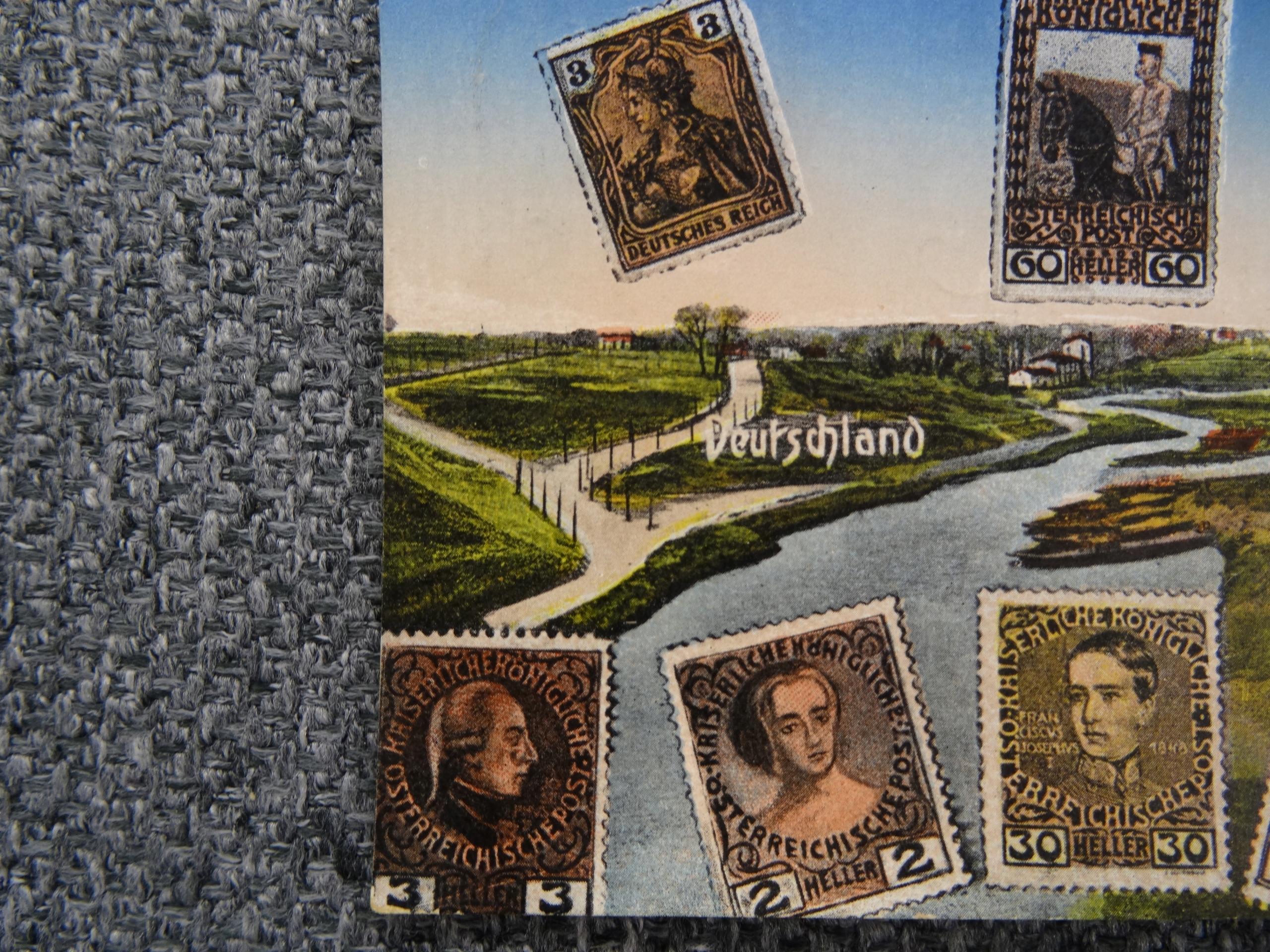 Открытка: Уголок трёх империй; Германия, Россия, Австрия Мысловице.