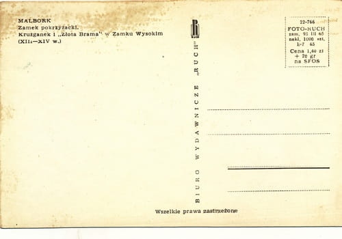 Оплачивая «Листівка Мальборка - 05725», вы можете быть уверены, что данное изделие из каталога «Гданьск и окрестности» будет доставлено из Польши и проверено на целостность. В цене товара, указанной на сайте, учтена доставка из Польши. Внимание!!! Товары для Евросоюза, согласно законодательству стран Евросоюза, могут отличаться упаковкой или наполнением.