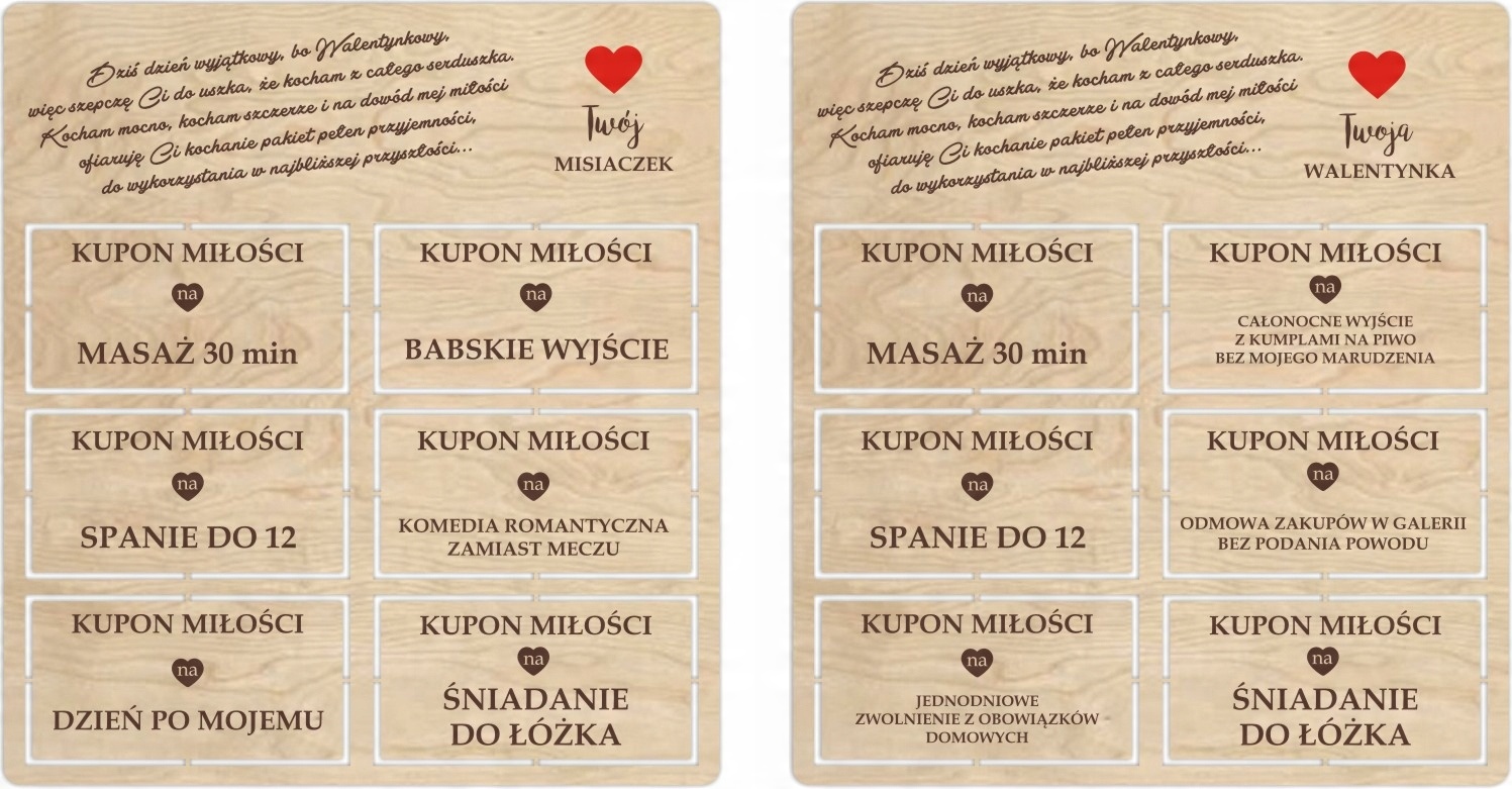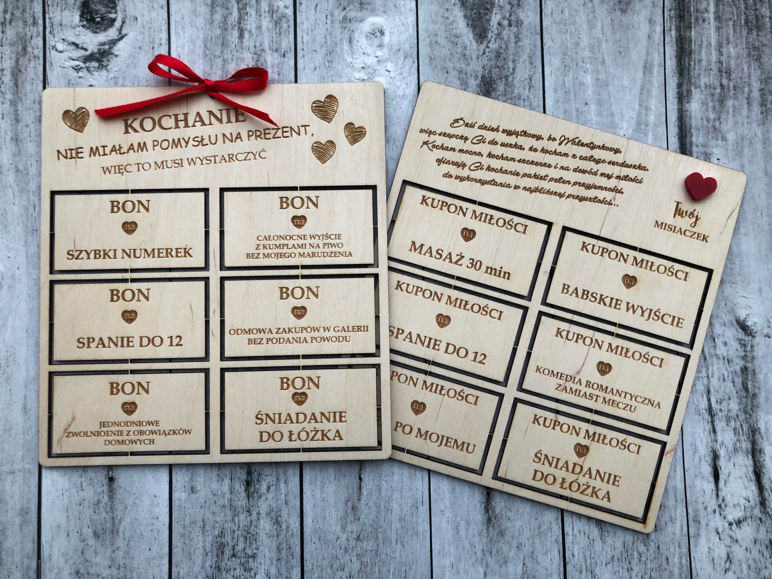 Деревянная открытка для НЕЕ для НЕГО, с признанием в любви и шестью купонами.