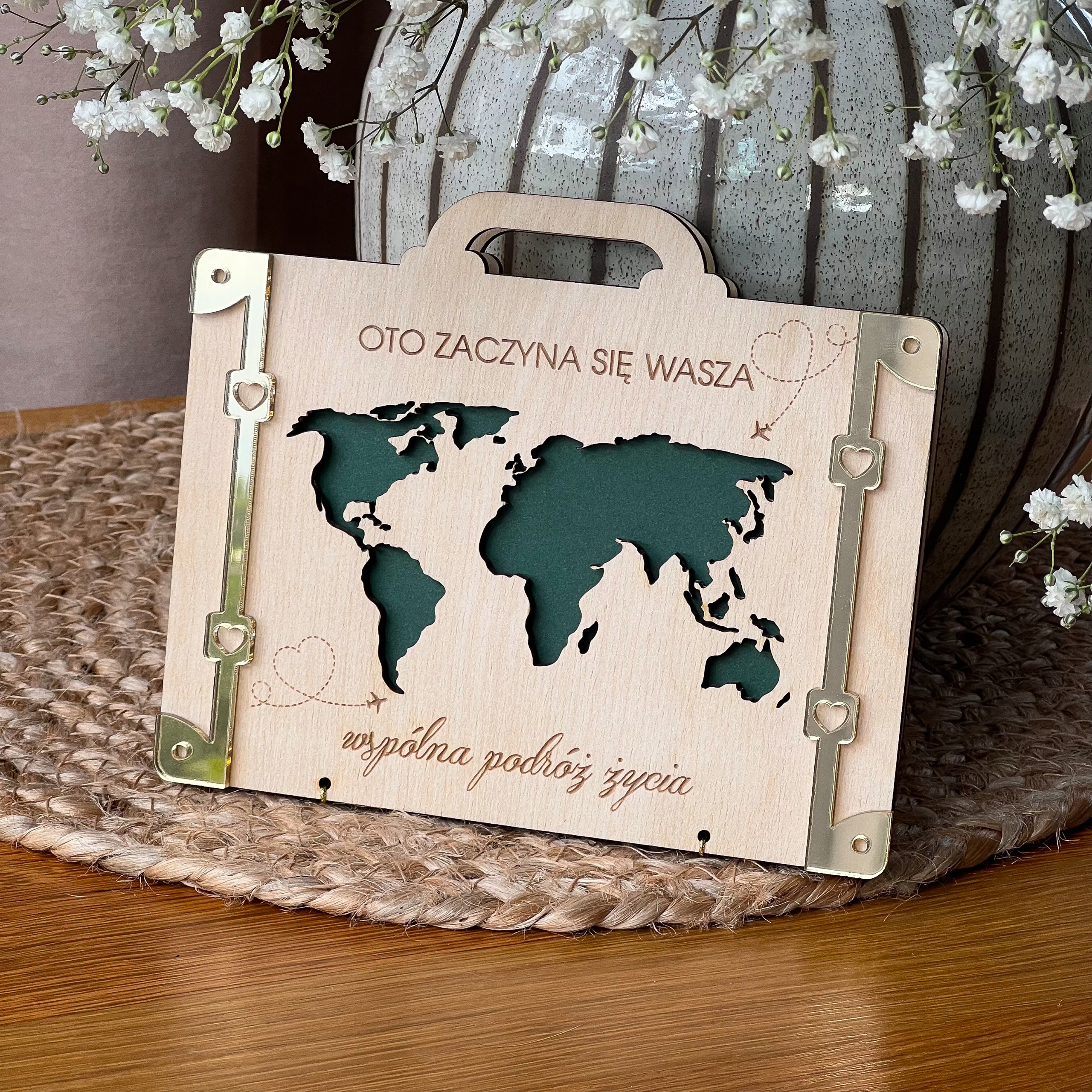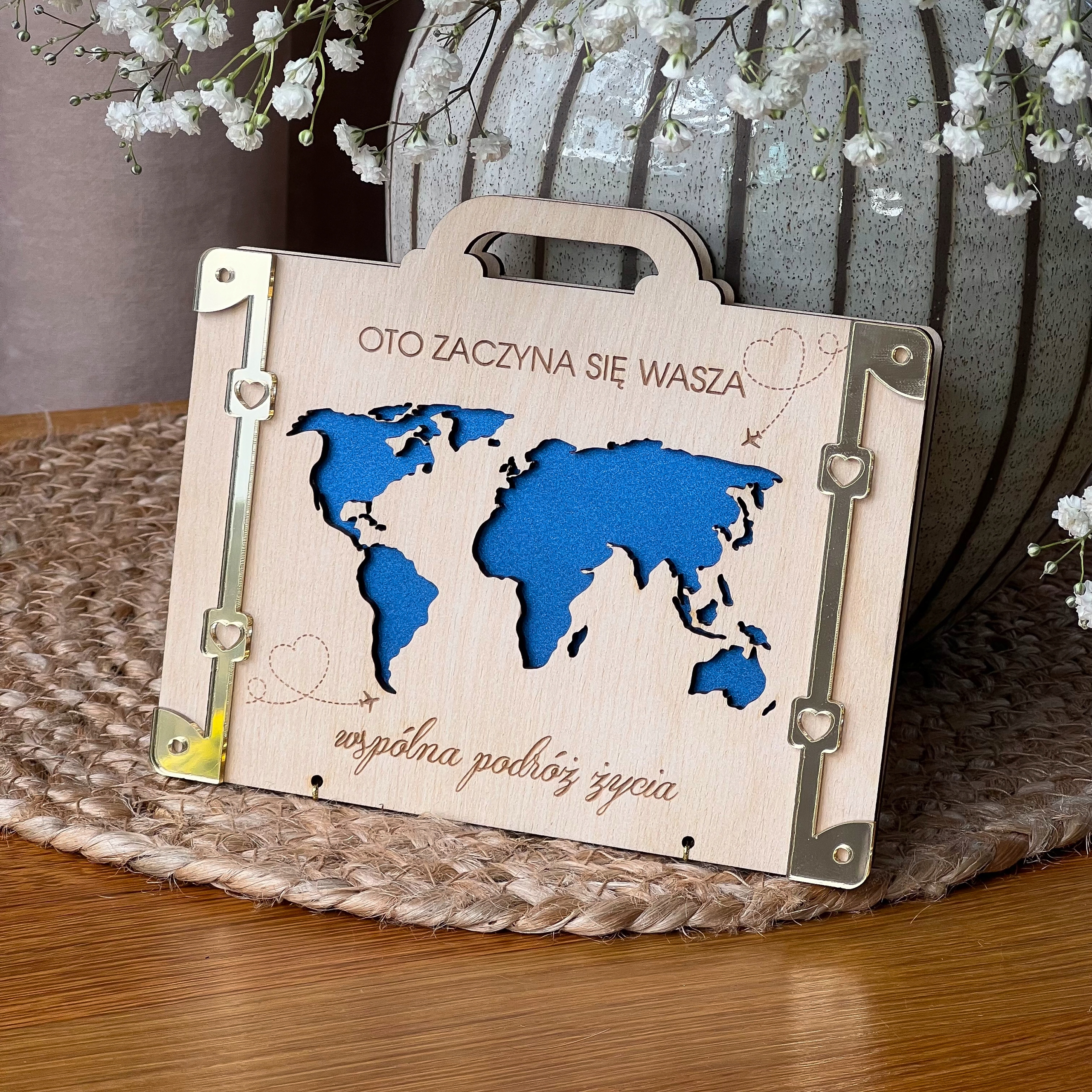 ❤️Деревянная свадебная открытка в форме чемодана.