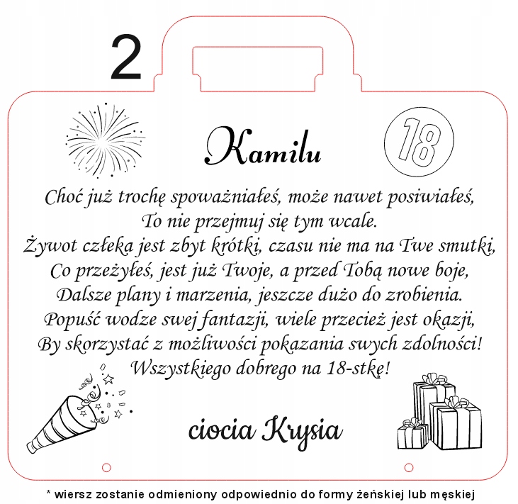 Просматривая «Подарок на открытку за 18 -й день рождения восемнадцать чемодан для денег.», вы можете быть уверены, что данный товар из каталога «[rubrica_name]» будет доставлен из Польши и проверен на целостность. В цене товара, указанной на сайте, учтена доставка из Польши. Внимание!!! Товары для Евросоюза, согласно законодательству стран Евросоюза, могут отличаться упаковкой или наполнением.