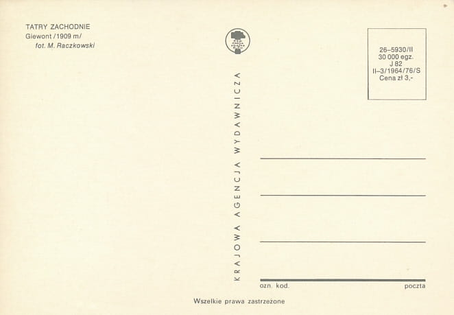 Просматривая «Открытка Татры - 012771», вы можете быть уверены, что данный товар из каталога «Малопольский» будет доставлен из Польши и проверен на целостность. В цене товара, указанной на сайте, учтена доставка из Польши. Внимание!!! Товары для Евросоюза, согласно законодательству стран Евросоюза, могут отличаться упаковкой или наполнением.