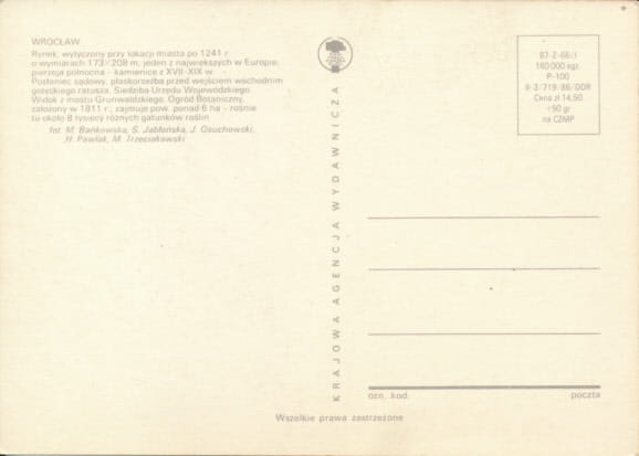 Просматривая «Листівка Вроцлав - 011529», вы можете быть уверены, что данный товар из каталога «Вроцлав (Бреслау)» будет доставлен из Польши и проверен на целостность. В цене товара, указанной на сайте, учтена доставка из Польши. Внимание!!! Товары для Евросоюза, согласно законодательству стран Евросоюза, могут отличаться упаковкой или наполнением.