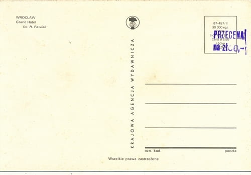Оплачивая «Листівка Вроцлав - 08013» данный товар из каталога «Вроцлав (Бреслау)», вы можете получить дополнительную скидку 4%, если произведете 100% предоплату. Размер скидки вы можете увидеть сразу при оформлении заказа на сайте. Внимание!!! Скидка распространяется только при заказе через сайт.