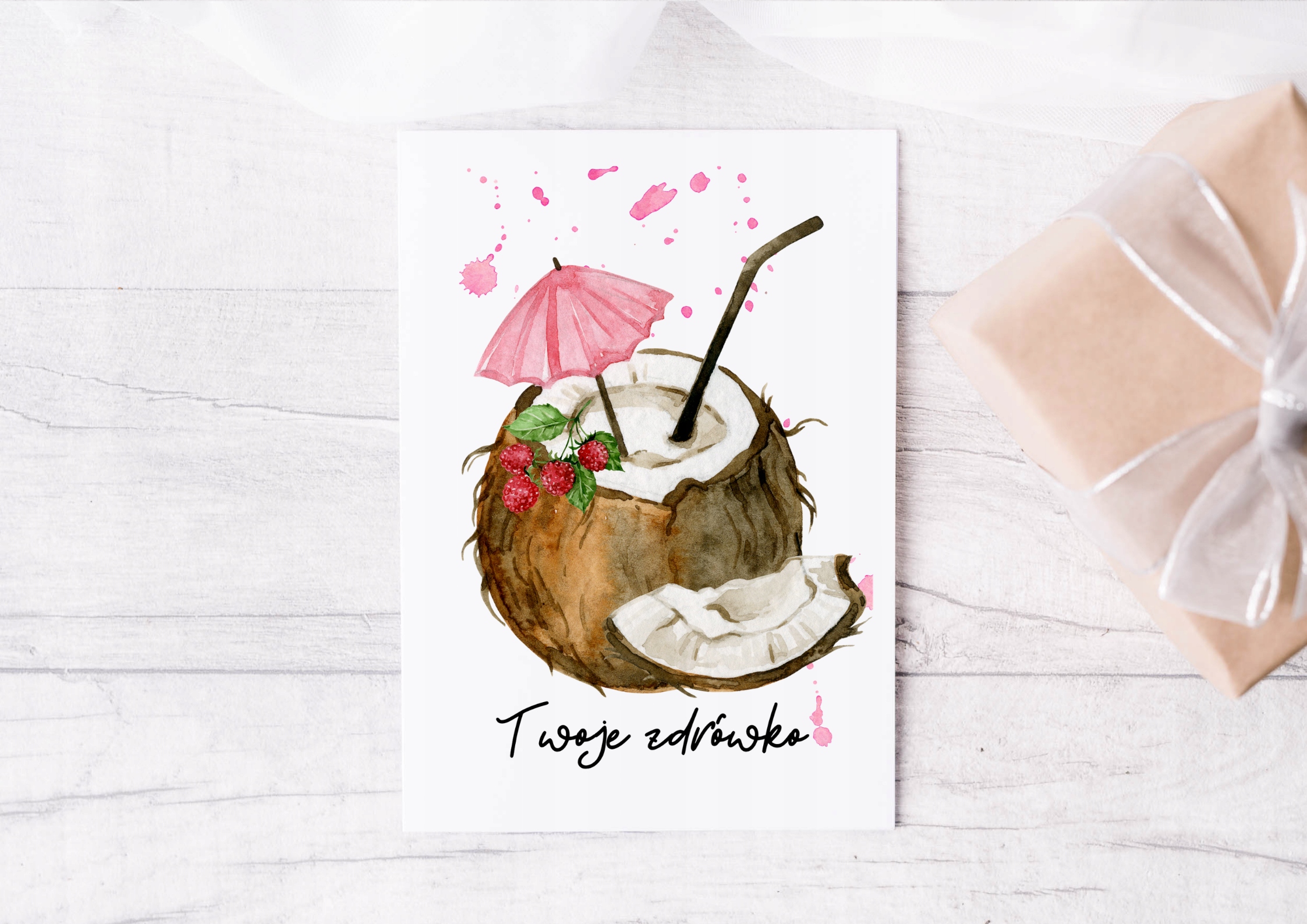 Листівка з кокосом ваш подарунок здоров'я на день народження