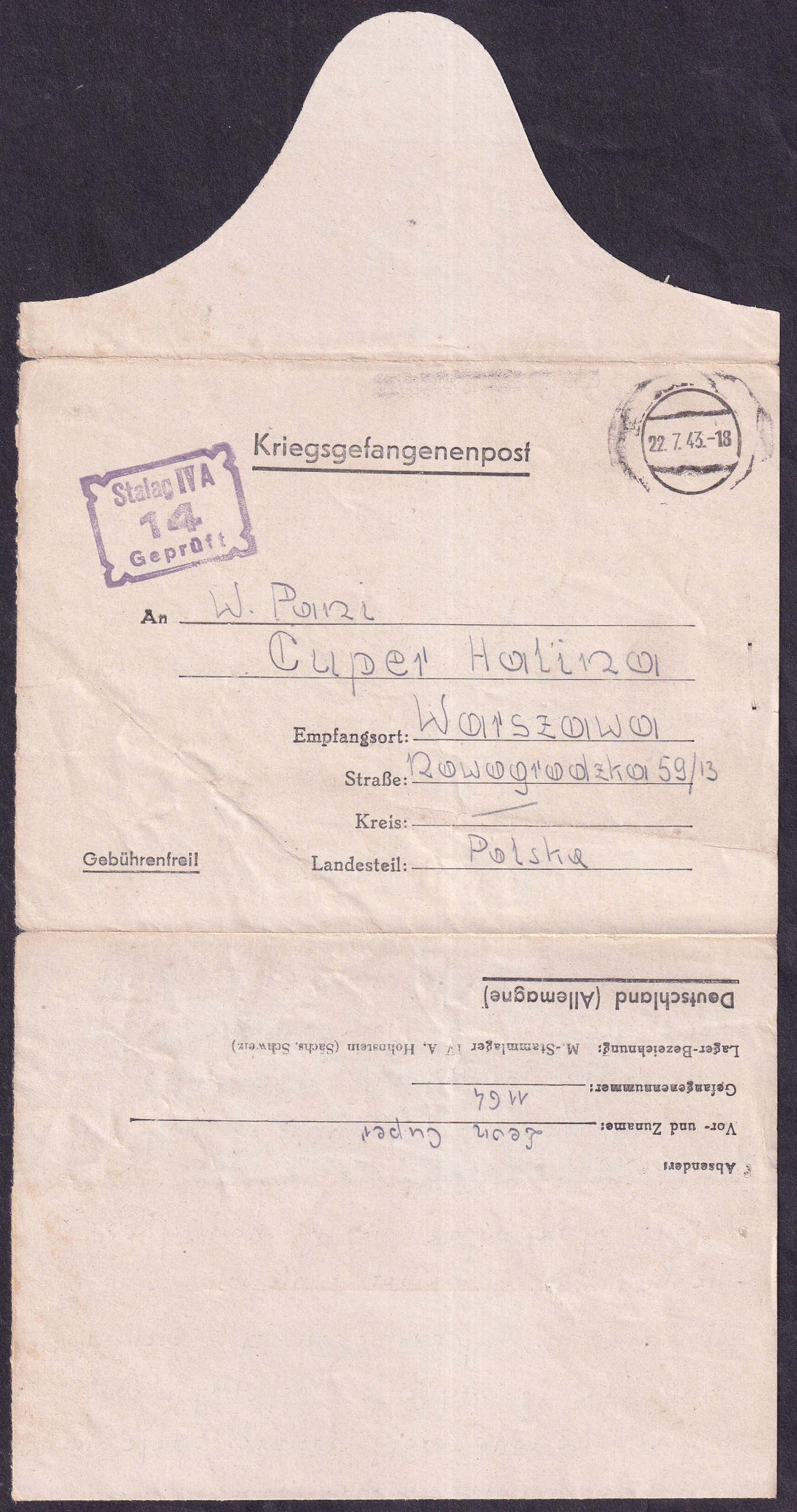Почтальон Шталаг IVA Хоэнштайн отправлен из лагеря в Варшаву, 1943 г. (75)