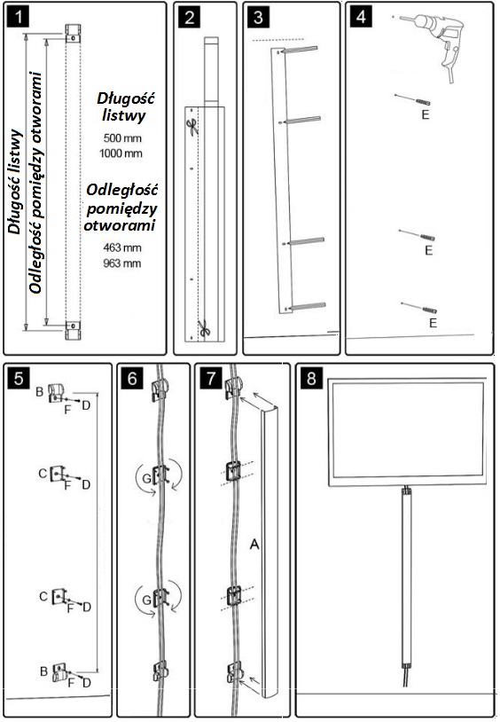 LISTWA MASKUJĄCA NA KABLE DO KABLI PRZEWODÓW ORGANIZACJA PORZĄDEK TUNEL 50