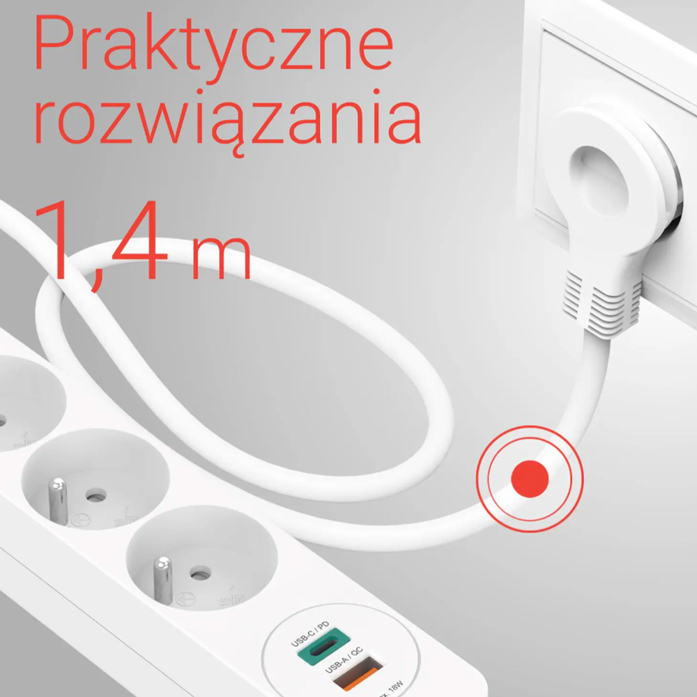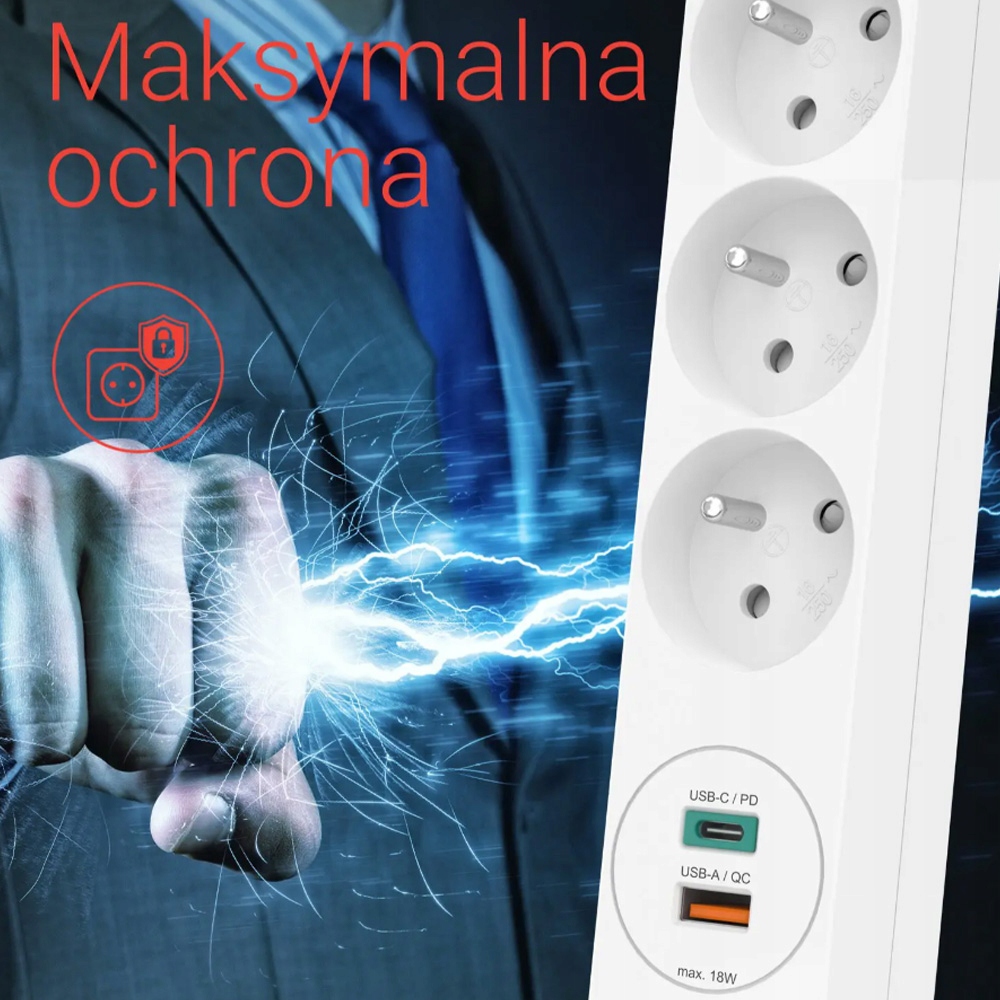 Listwa zasilająca Hama 5 Gniazd + 2xUSB A/C Power Delivery Quick Charge3.0