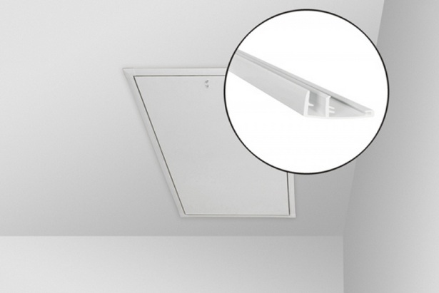 Пластиковые ленты LXL-ПВХ белого цвета используются для маскировки зазоров вокруг лестниц, остающихся после их установки в потолок.