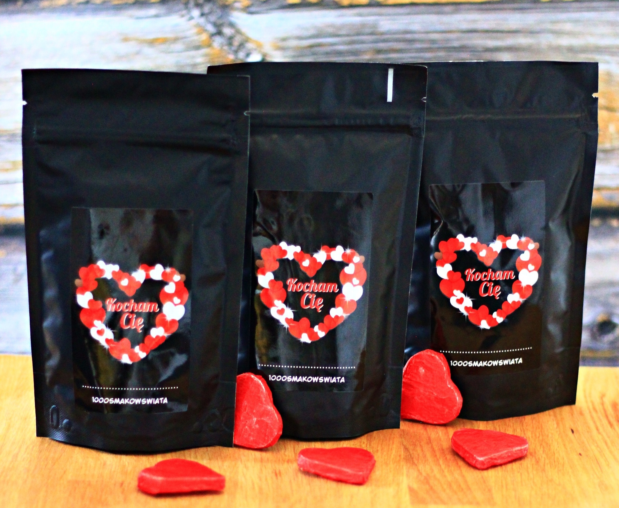 Композиция: Черный чай, сладкие красные сердца с гранатом