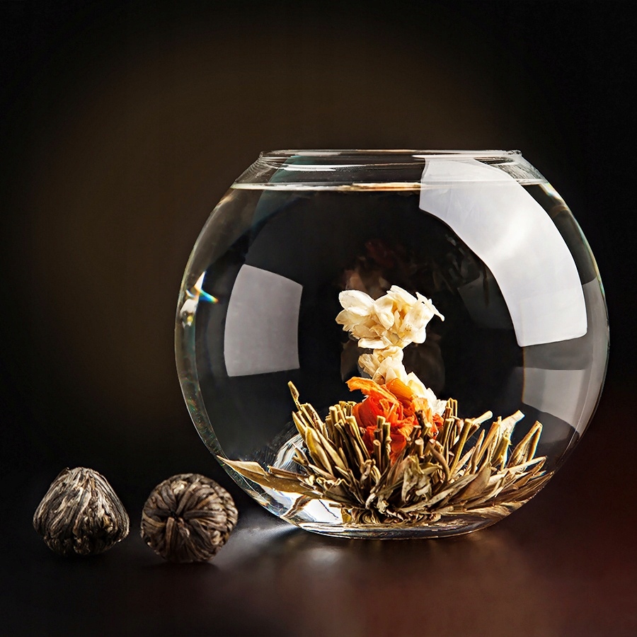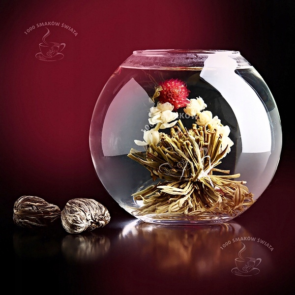 В то время как каждый цветущий чай упакован отдельно в целлофанной упаковке , на которой есть наклейка с названием чая, веса, даты потребления и метода пивоварения. Набор цветущего чая упакован в мешок органзы . Окно связано с декоративной лентой. b>, пока каждый цветущий чай имеет OK 8 г