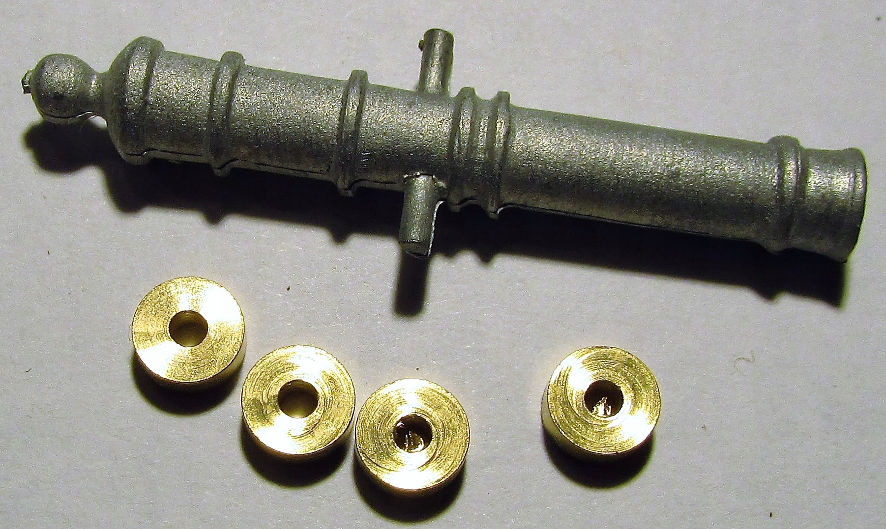 - Новый комплект, который состоит из отлитой из чугуна пушки и четырех латунных колес,