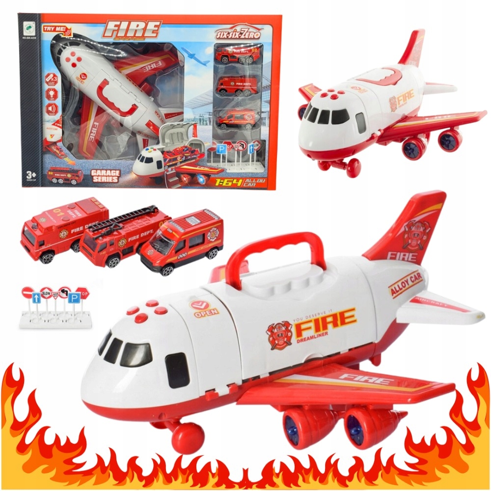 ОГРОМНЫЙ ПОЖАРНЫЙ БРЕНДОВЫЙ САМОЛЕТ С ВОЗМОЖНОСТЬЮ ПЕРЕВОЗКИ МАШИН, ВХОДЯЩИХ В КОМПЛЕКТ - машинок из металла. Самолет со звуком и светом.
