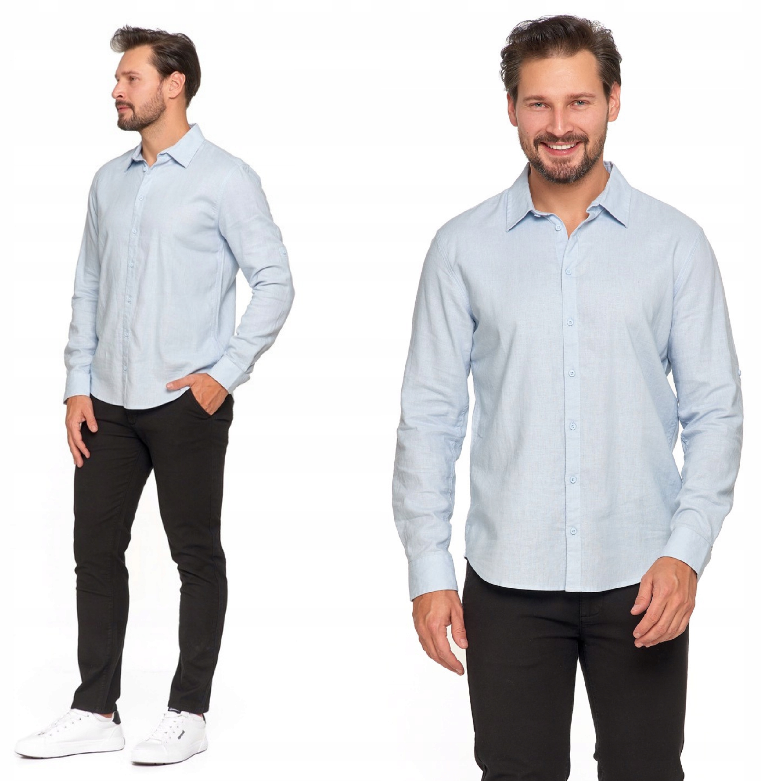Льняная мужская льняная рубашка элегантная классика с длинными рукавами свет