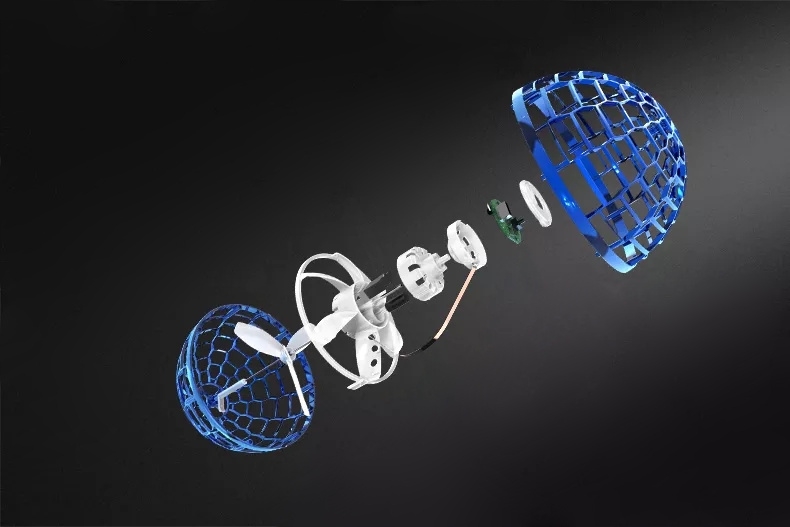 SELF - внутри шара находится механизм и 2 пропеллера, а внизу небольшой переключатель, который приводит их в движение и благодаря этому игрушка может взлетать самостоятельно; крылья гибкие, но в то же время достаточно прочные, чтобы легко поднять игрушку в воздух.