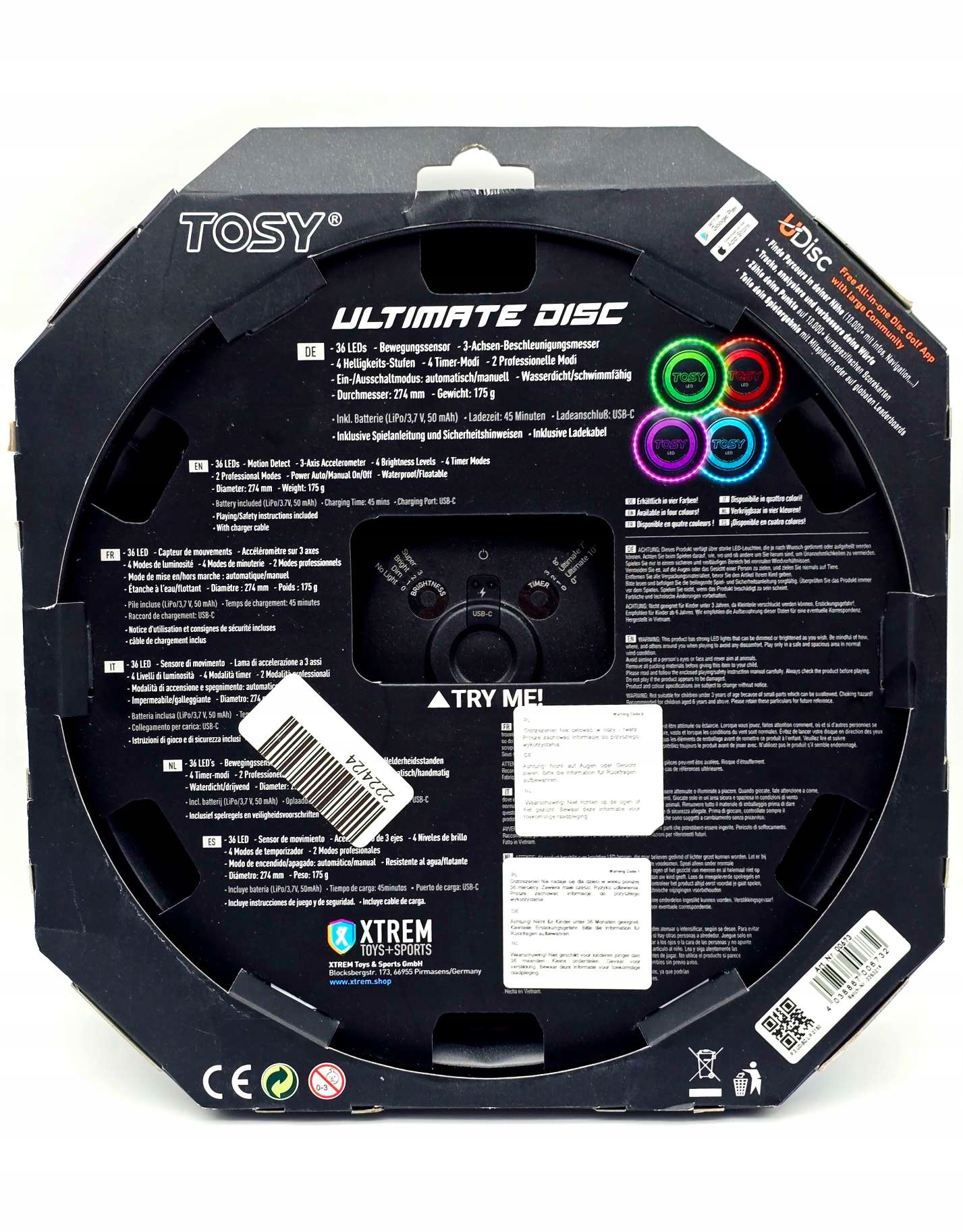 - 36 Супер яркие светодиоды - как единственное светящее летающее кольцо в мире, вы полюбите удовольствие от нашего уникального кольца Tosa как в комнатах, так и на улице, днем и ночью с друзьями и семьей. Вы не поверите, насколько весело он дает, пока не попробуете
