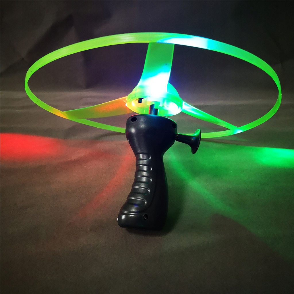 Наденьте кольцо на ручку, потяните за веревку, и светящееся кольцо взлетит высоко вверх. {до 14 метров