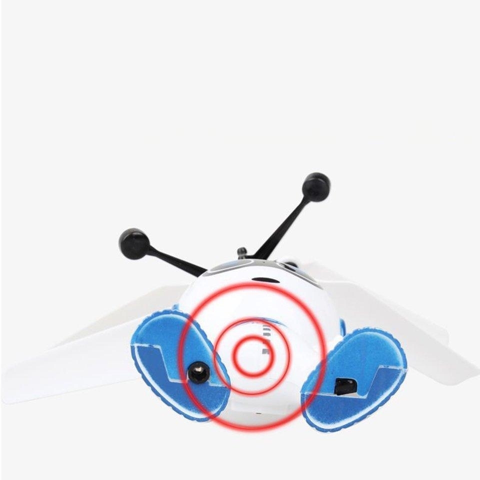 Идеально подходит для детей, интересующихся захватывающим миром летающих радиоуправляемых игрушек. Перед включением робота следует расположить вертикально. После запуска сзади загорается красная лампочка, и через 3 секунды пропеллеры приходят в движение. Когда дрон достигает определенной высоты, он автоматически медленно снижается.