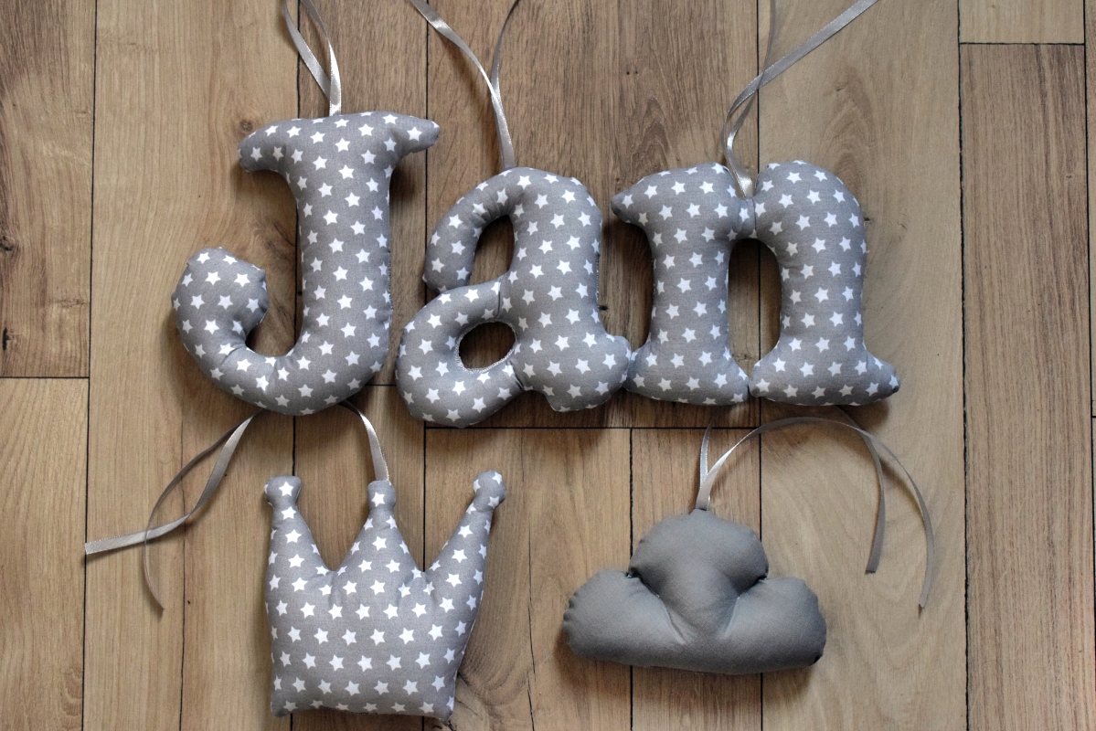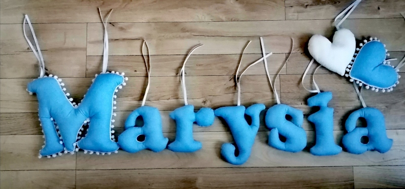 Literki szyte imię dziecka z materiału 19cm GRATIS